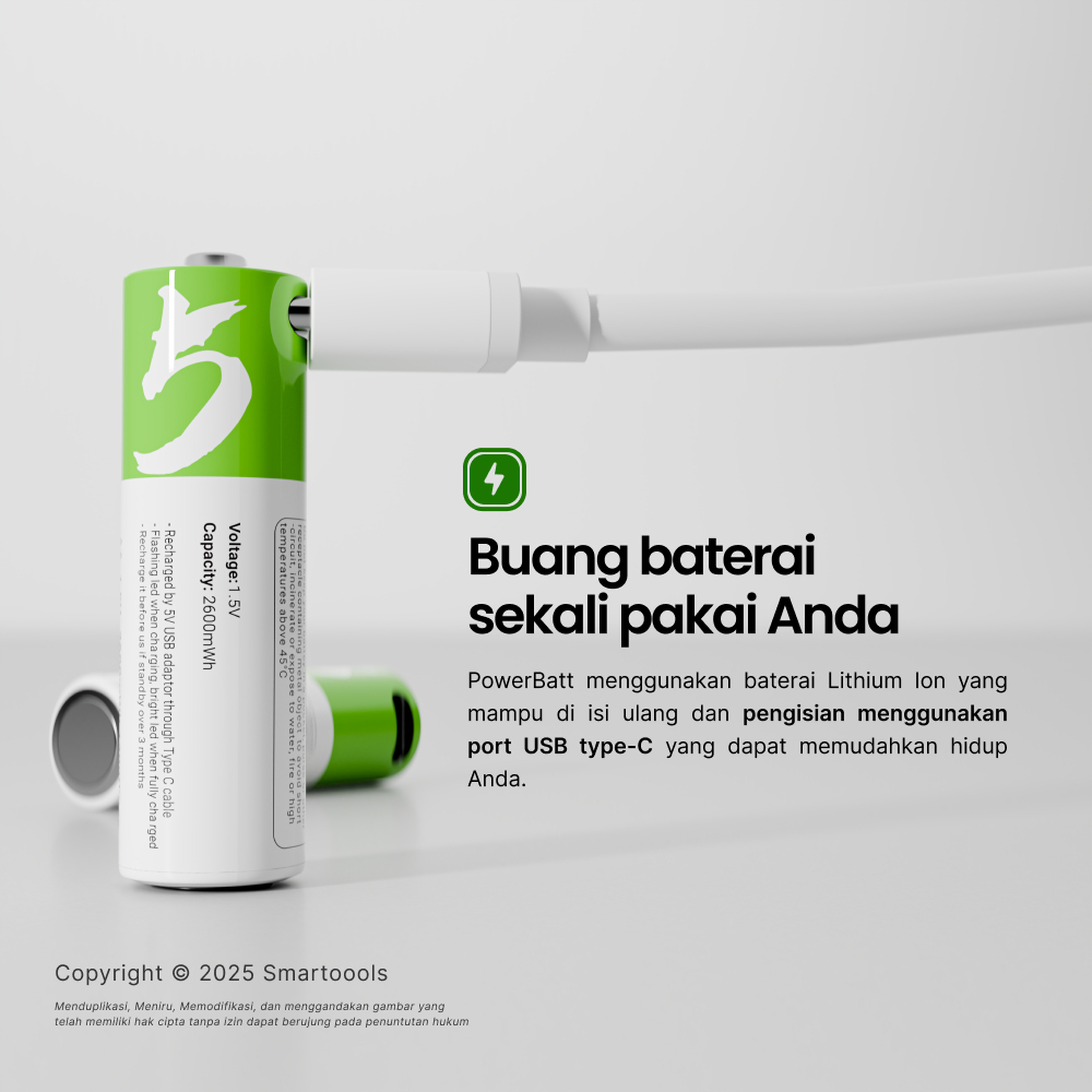 Baterai Cas Isi Ulang 4pcs Smartoools AA & AAA 1.5V Type-C USB Rechargeable Lithium Battery Charge