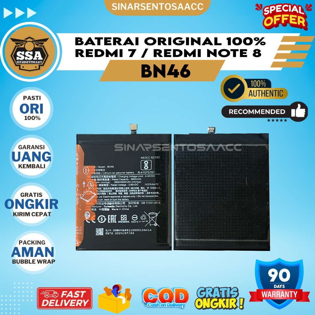 Baterai Original 100% Redmi Note 8 Redmi 7 BN46 BN 46 Ori HP Batre Batrai Batrei Battery Ori HP Batu Batere Garansi Murah Awet Garansi