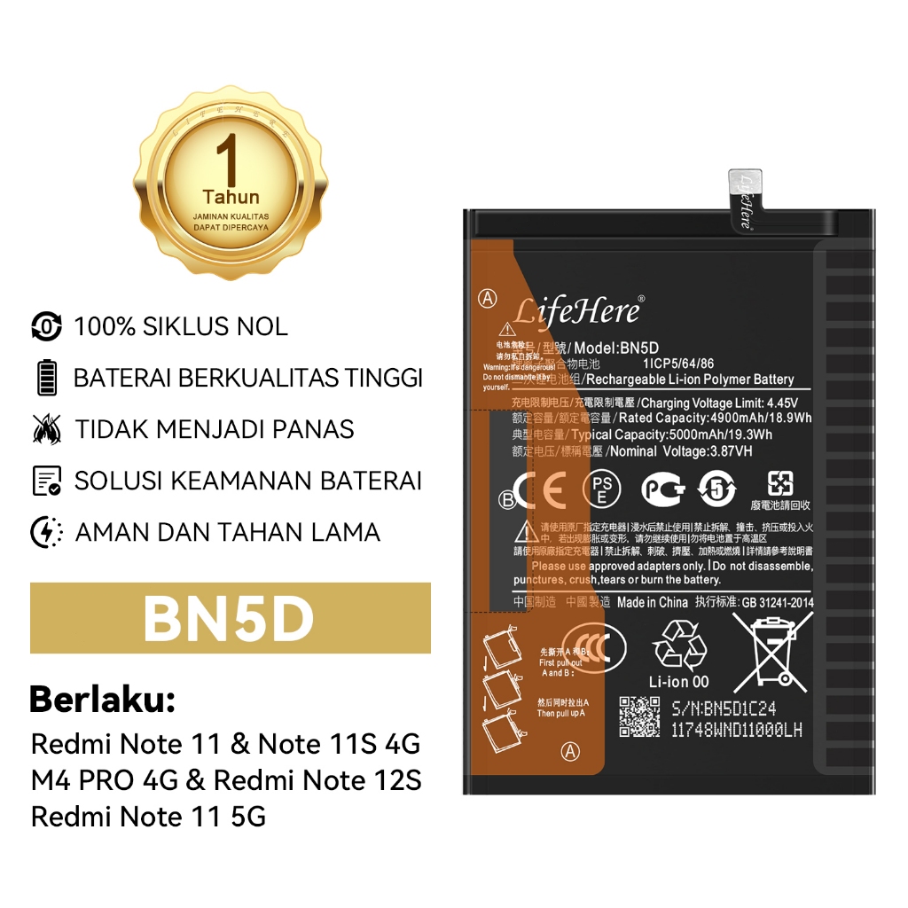 Lifeher Baterai REDMI NOTE11/NOTE11S 4G/M4 PRO 4G/REDMI NOTE 12S/NOTE 11 5G battery
