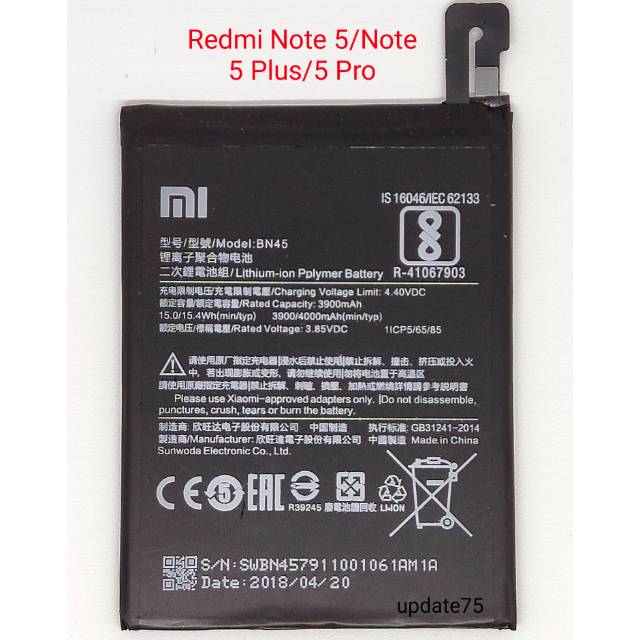 Baterai Redmi Note 5 / Redmi Note 5 Pro 5pro / Redmi Note 5 Plus Batre BN45