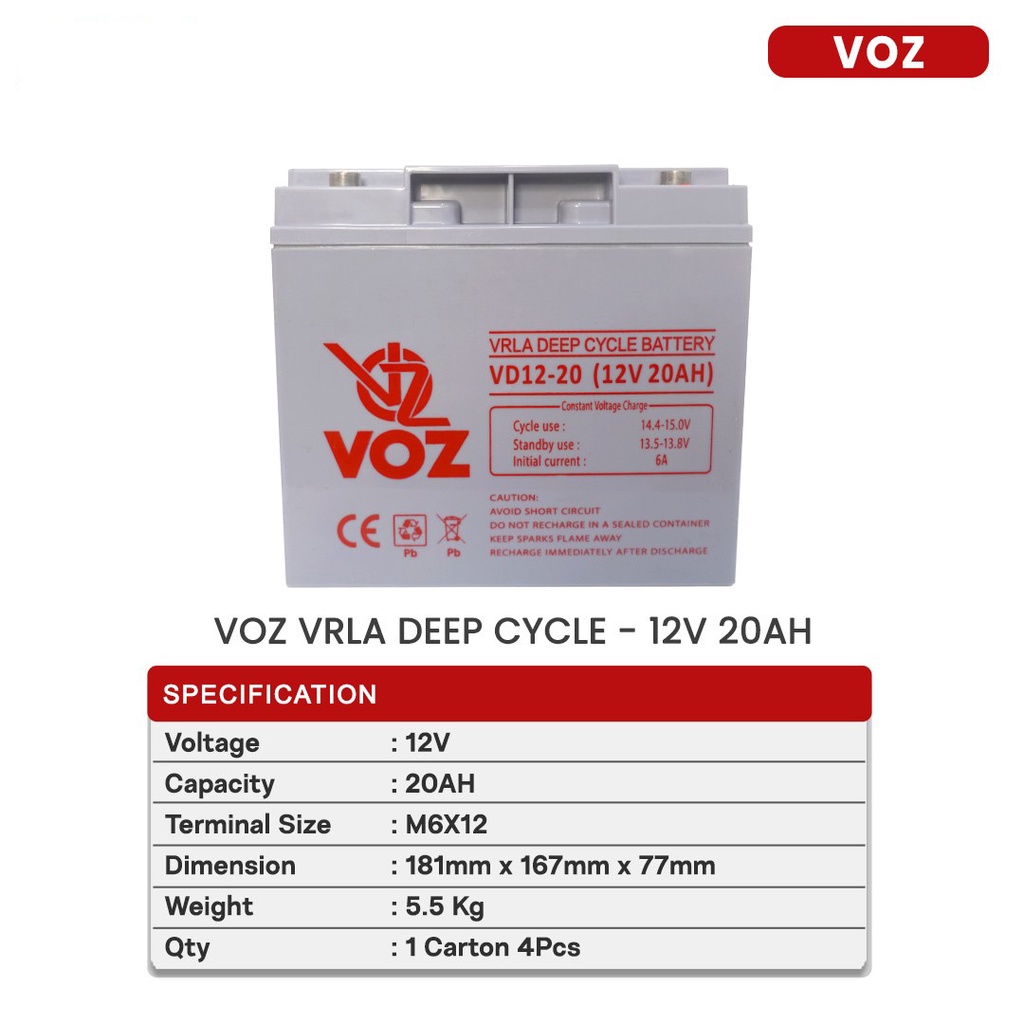 Baterai UPS Voz 12v 20AH Deep Cycle Voz VD12-20
