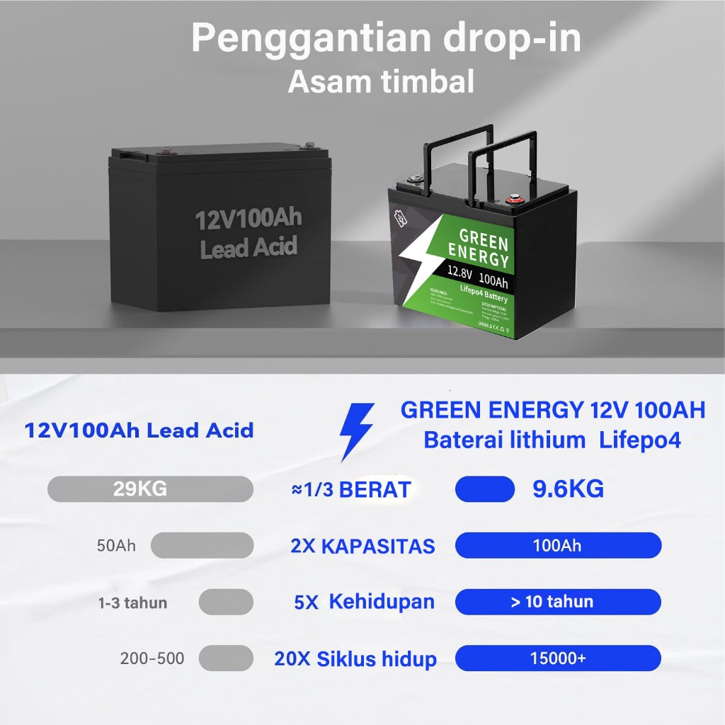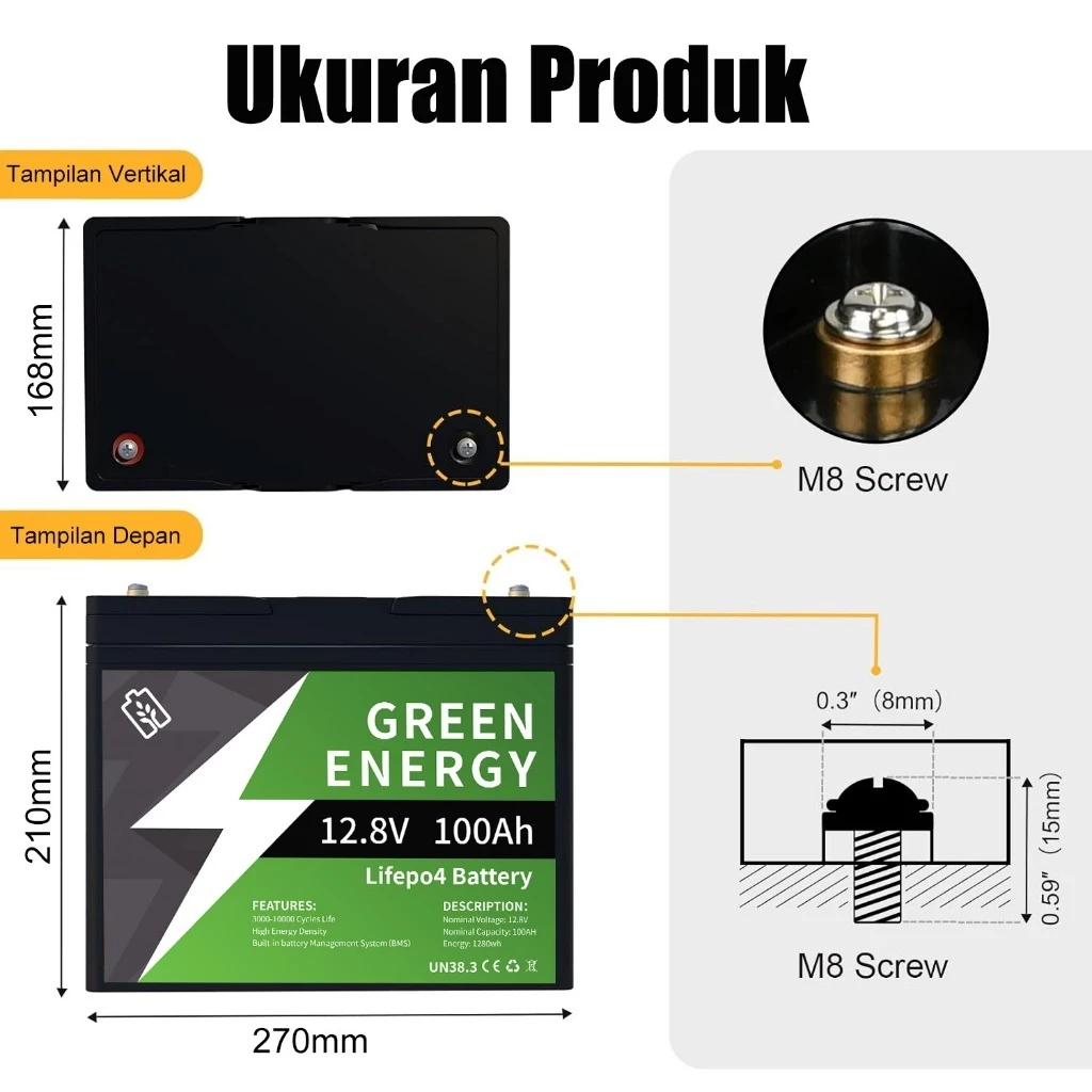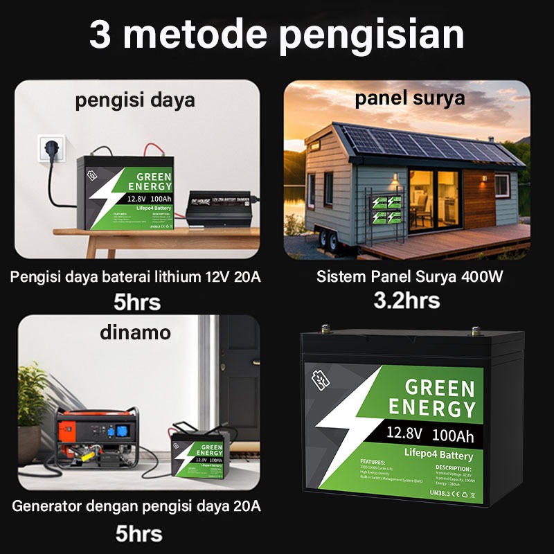 【20 tahun garansi】 Lithium Baterai LiFePo4 12.8V 100AH 10000+ siklus Bateri Hidup Panjang yang dapat Diisi ulang baut