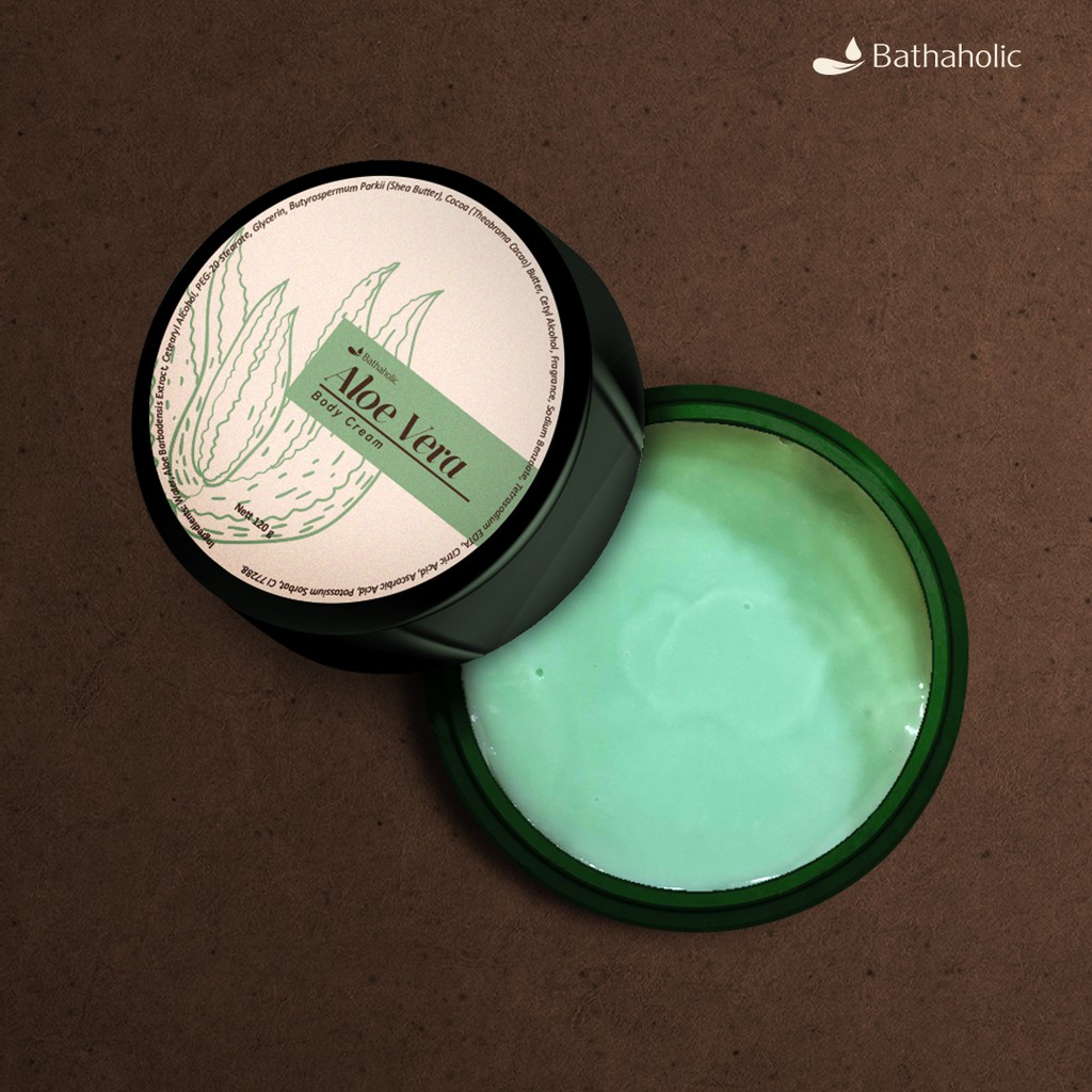 Bathaholic - Body Cream Aloe Vera Bathaholic / Melembapkan, Menenangkan & Menyegarkan Kulit Sehari-hari