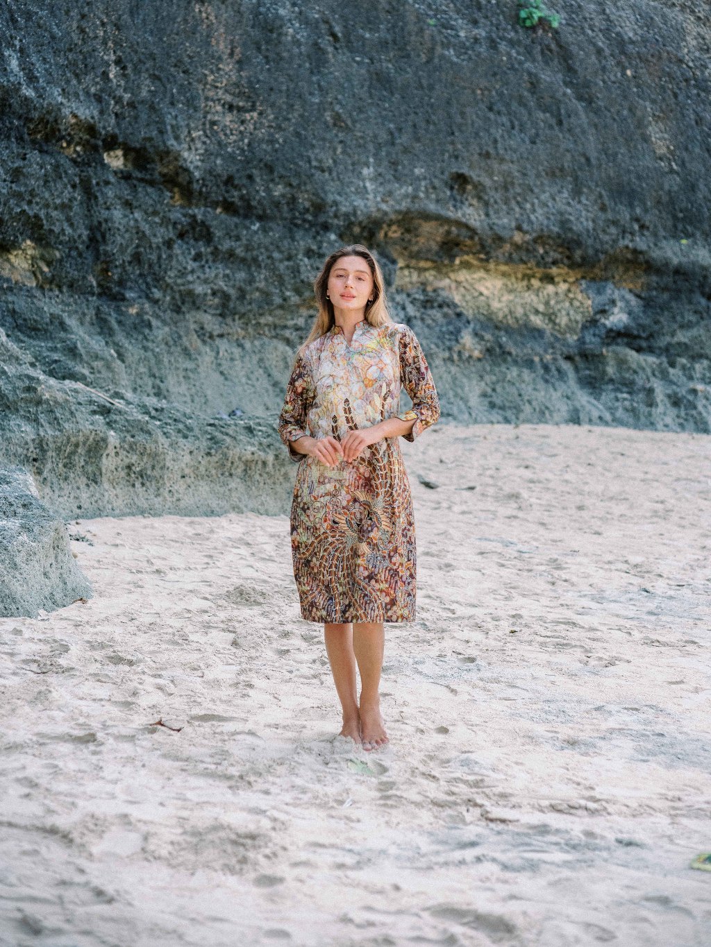 Adyatma Sarimbit Set Couple Batik Astaka Brown - Kemeja Batik Slim Fit Lengan Pendek & Dress Katun