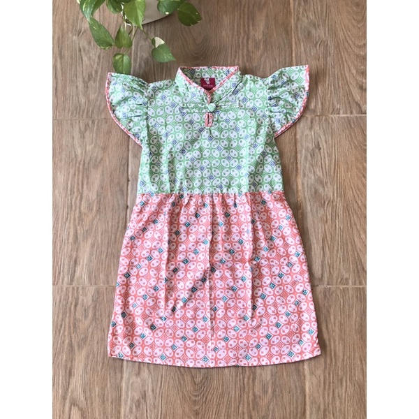 Batik Costume Dress Batik Anak Perempuan Sissy Soft Sanghai Hijau Merah Dress Batik Premium Sissy Soft Model Sanghai Dress Batik Kerah Sanghai Dress Hijau Kombinasi Salem