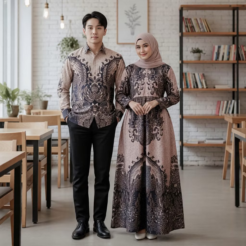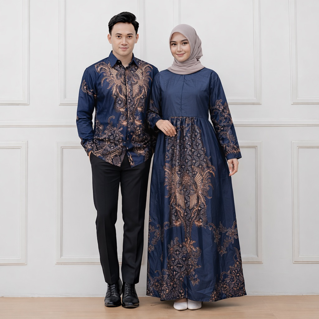 Baju Batik Couple Pasangan Gamis dan Kemeja Sarimbit Batik Keluarga