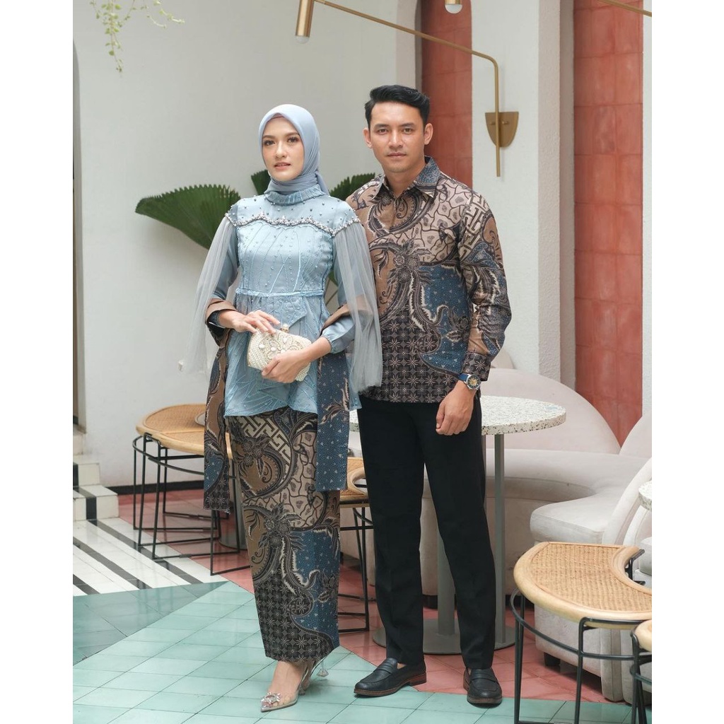 Batik Couple Kebaya Modern Kebaya Tunangan Lamaran Baju Wisuda Baju Tunangan Baju Lamaran Batik Brukat VANILLA BLUE