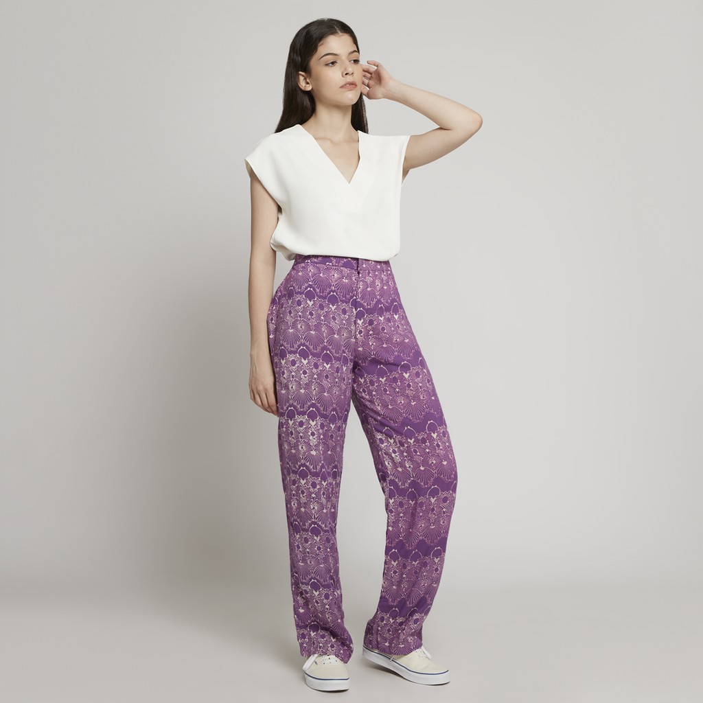 Batik Fractal Bawahan Wanita Batik (Celana) Motif Melik Warna Ungu Fit To M