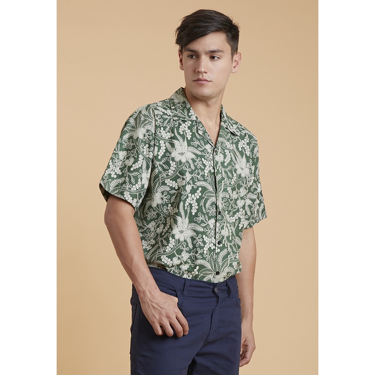 Batik Fractal Kemeja Pria Motif Green Telang Ukuran Standar Dewasa