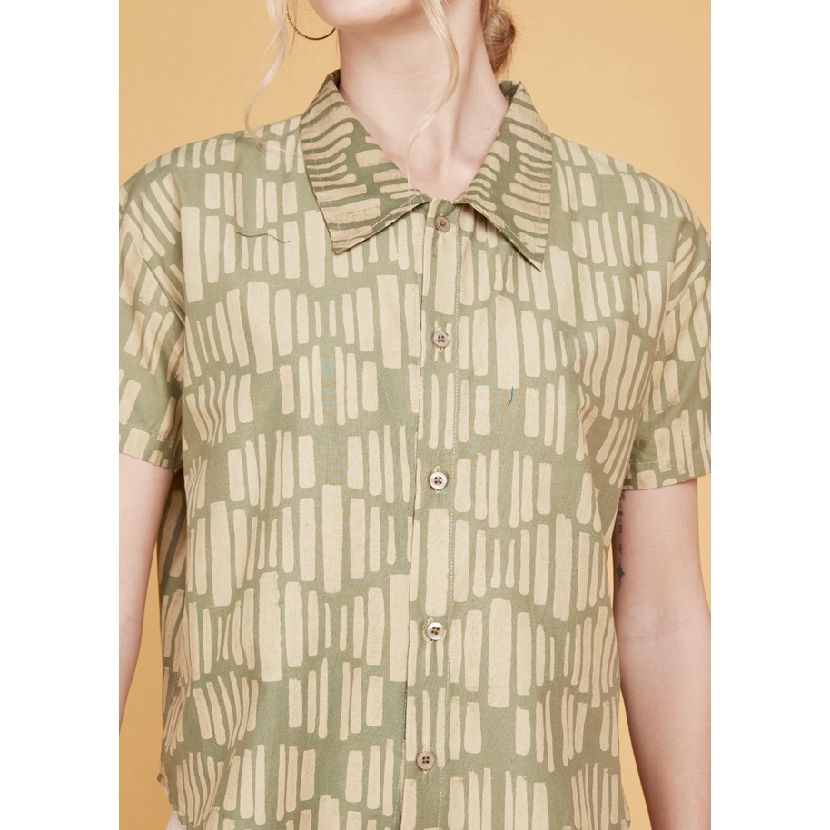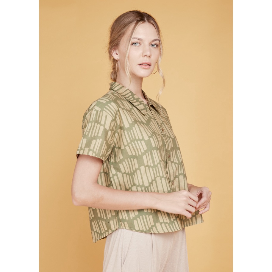 Batik Fractal Kemeja Wanita Ruas Hijau