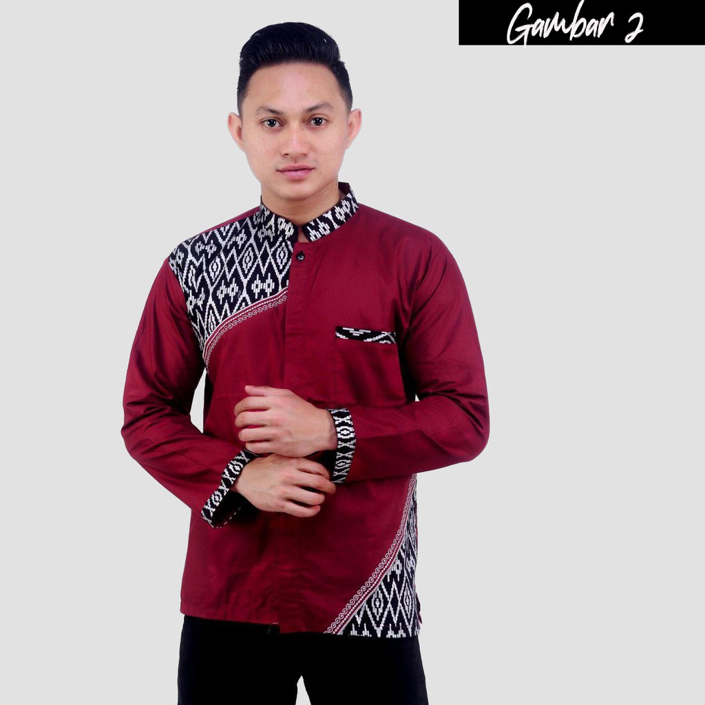 Batik Kombinasi Kemeja Batik Pria Lengan Panjang Warna Maroon
