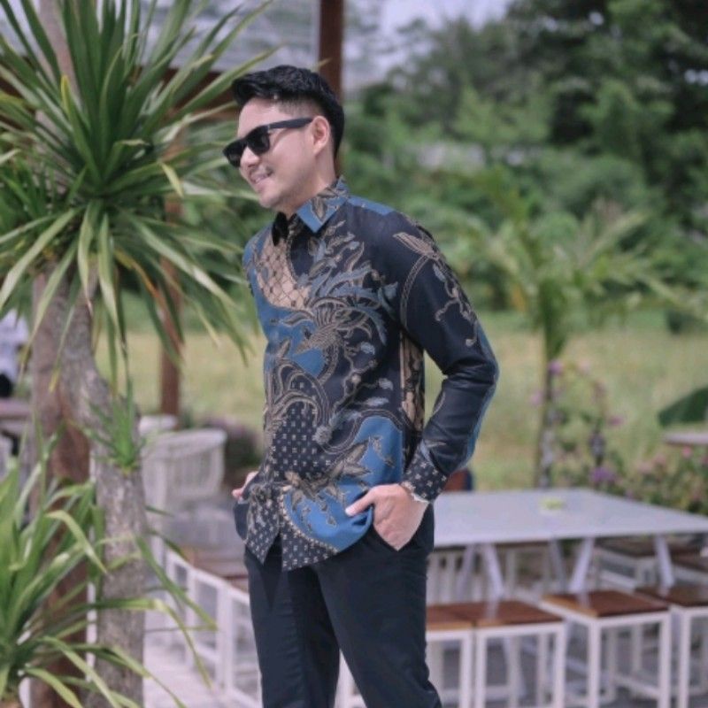 Batik Solo Premium Slim Fit kemeja batik Pria SLIMFIT dewasa lengan panjang Hitam Biru mewah/ kemeja batik premium/ kemeja batik berlapis furing/ Atasan batik kondangan/ batik pria terbaru/Batik Pria Lengan Panjang/baju batik Pria lengan panjang modern