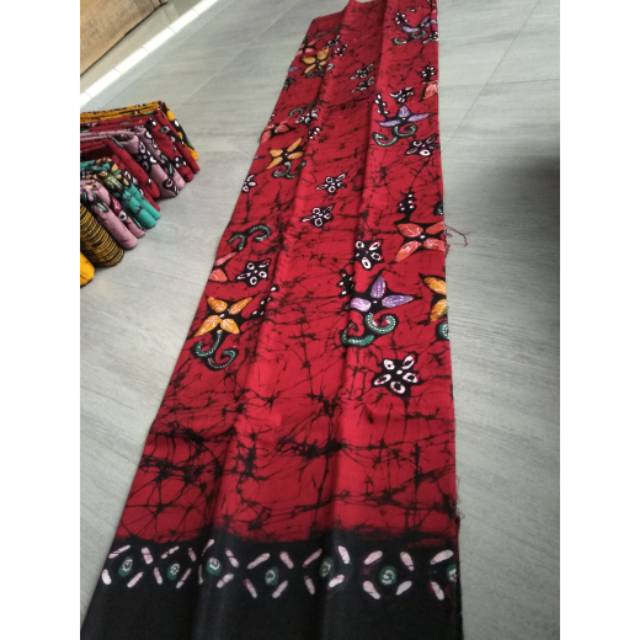 Batik Tulis Bakaran Motif Daun Cantik Warna Merah Cabe