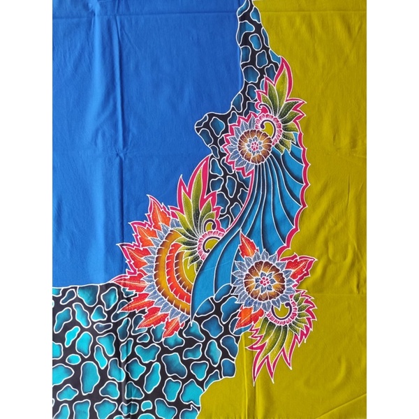 Batik Tulis Indonesia Warna Biru Kuning Kombinasi Motif Khas