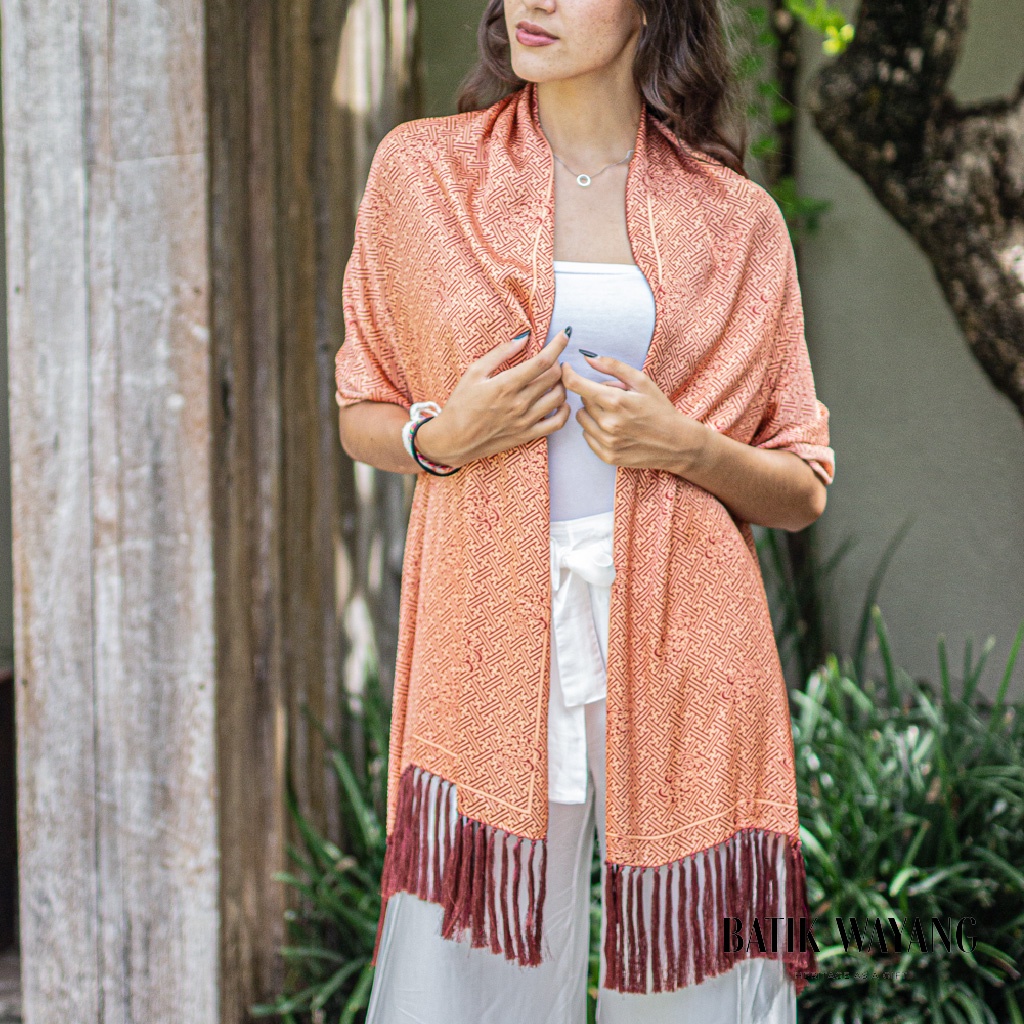 Batik Wayang Shawl In Gift Box - Selendang In Banji Naga Red