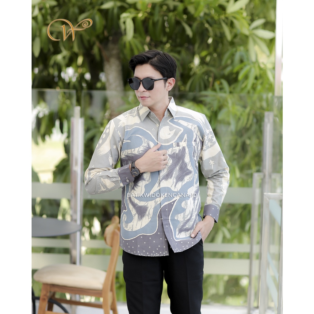 Batikwidokencana - Kemeja Batik Kantor Motif Abstrak Daun Pisang - Warna Natural Abu Abu