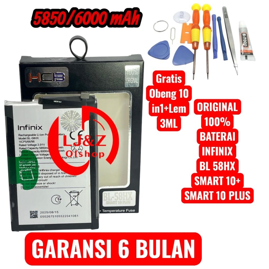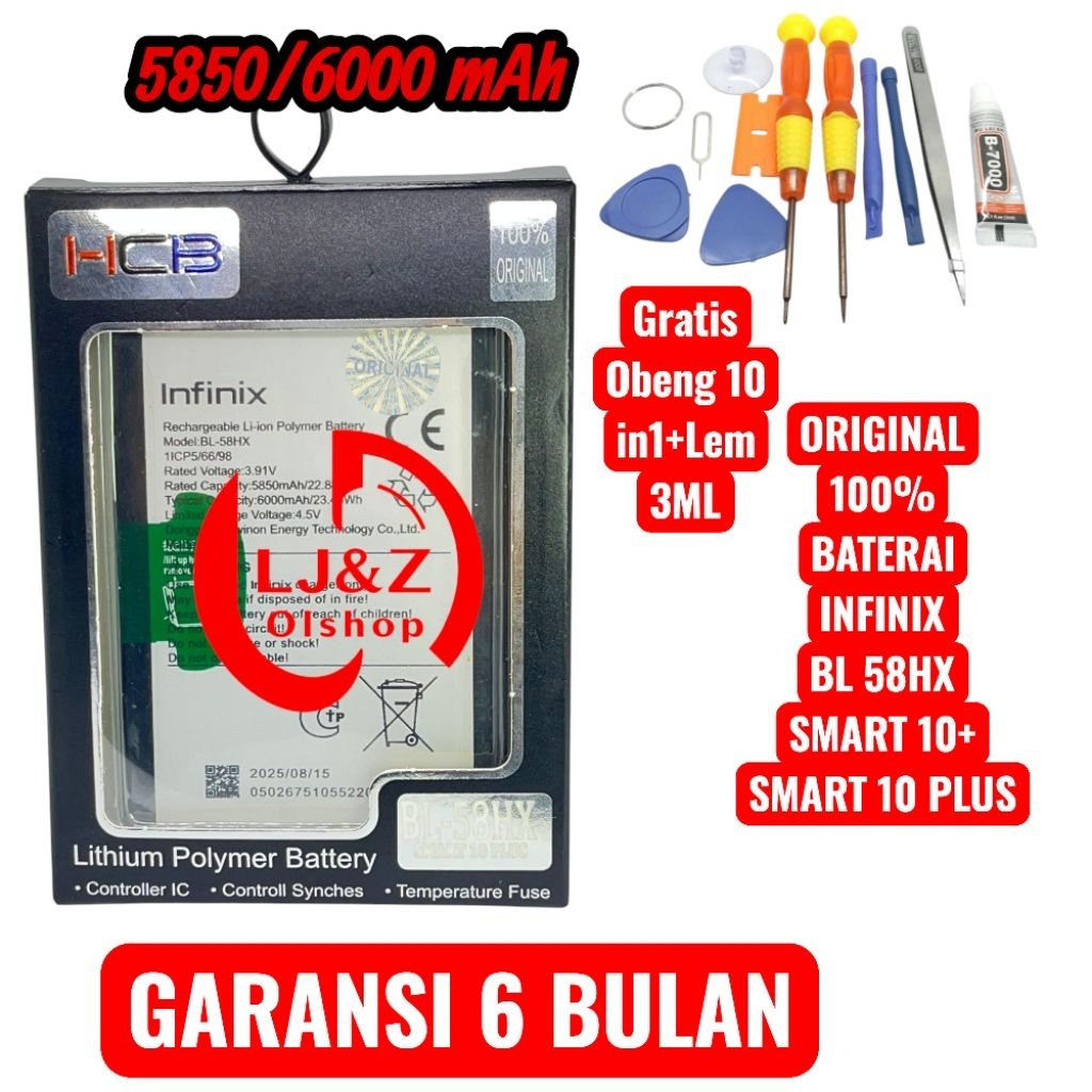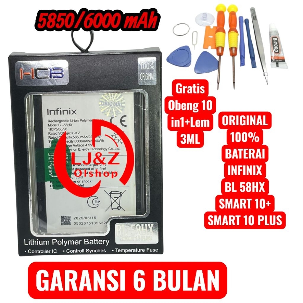 ORIGINAL 100% Baterai Batre Infinix Smart 10 Plus SMART 10+ Batrei Batrai Battery BL-58HX BL58HX GRATIS Obeng 10iN1 + Lem 3ML