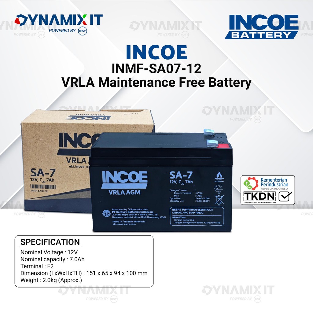 Battery / Baterai UPS INCOE INMF-SA07-12 SA-7 12V 7Ah VRLA AGM Deep Cycle Battery - Aki kering