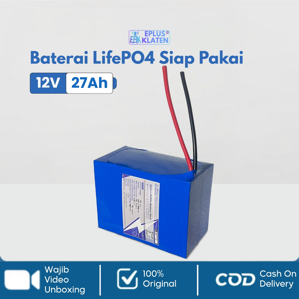 Battery LifePO4 12V 27Ah 12 Volt + BMS Siap Pakai Baterai Setrum PDC Ikan Accu Aki Motor - BT123