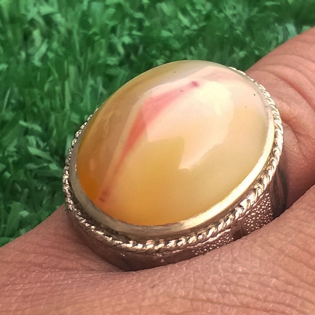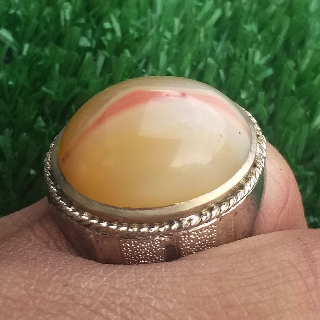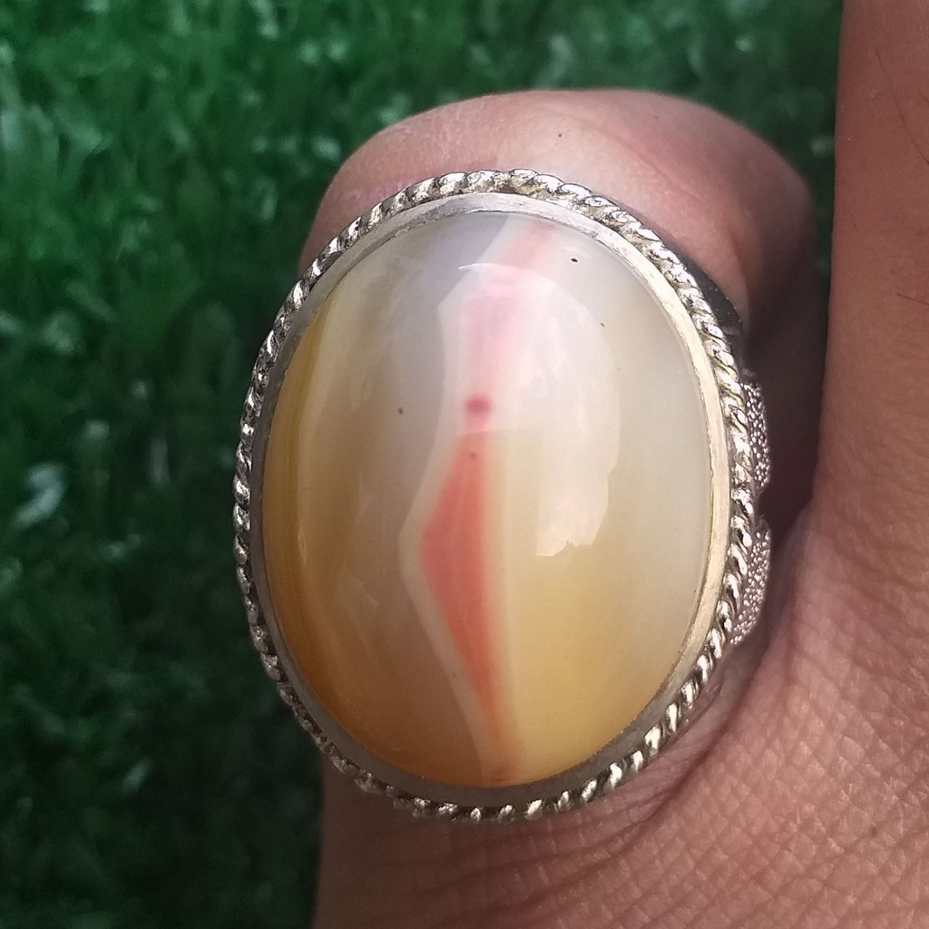 Batu Akik Kendit Cempaka Kristal Bertitik Merah Di Jalur Kontrasnya Belah Putih Keren