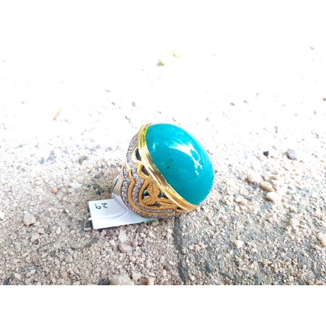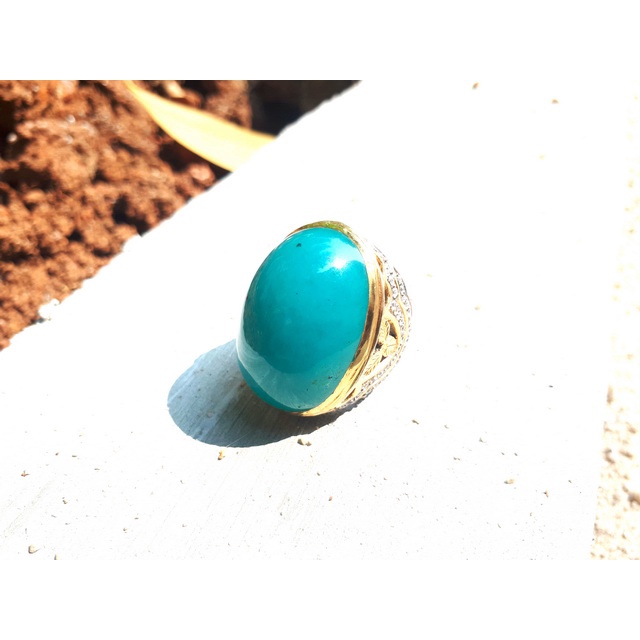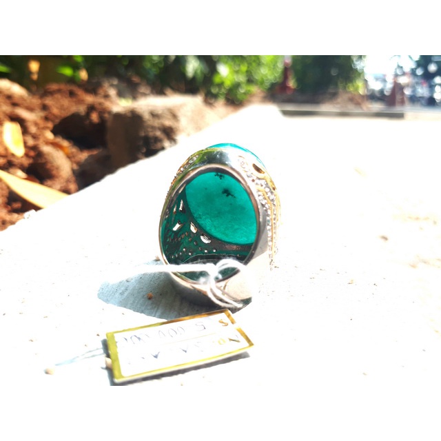 Batu Bacan Doko Majiko Jumbo BC035 Bluish Green Ikatan Perak Mewah