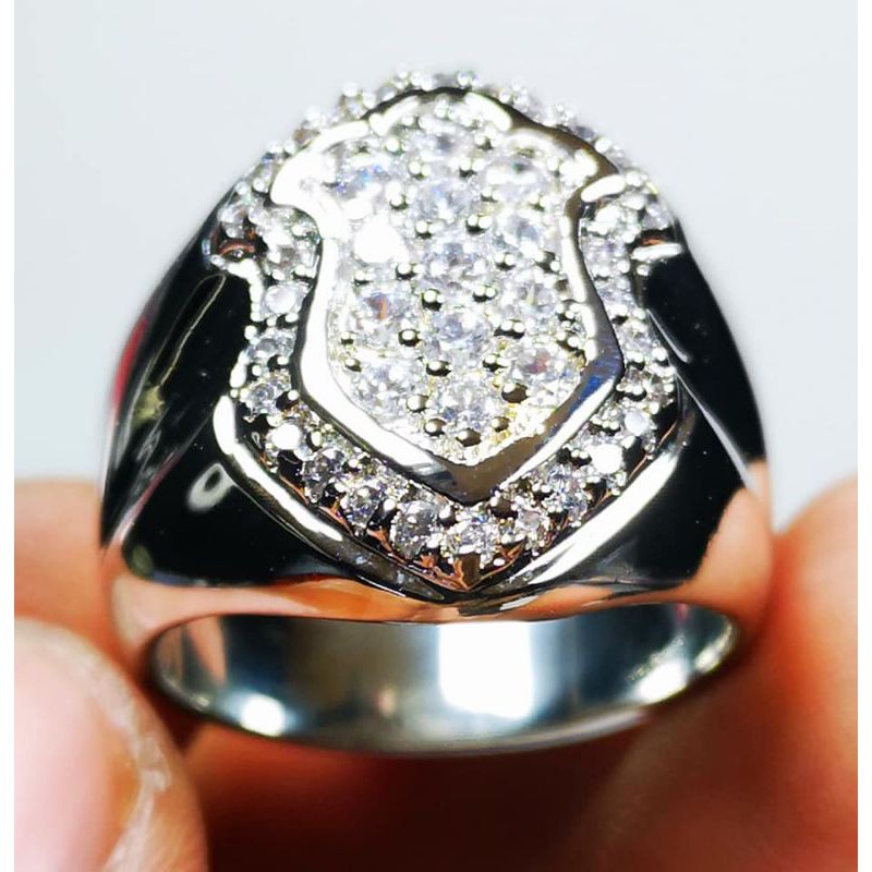 Batu Cincin Pria White Zirconia Berlian Tabur Ring Stemple Bentuk Terompah