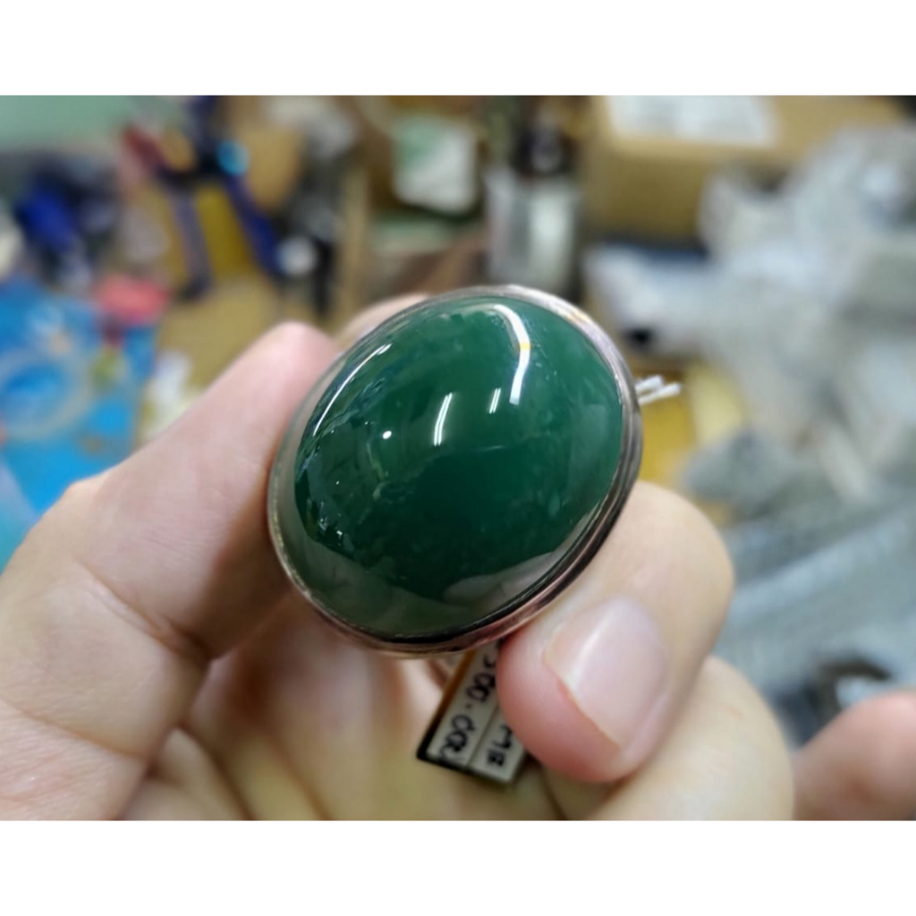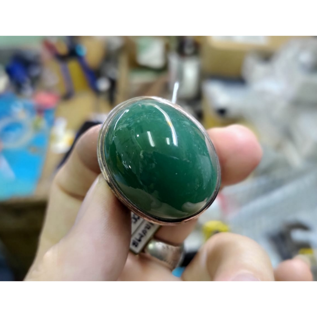 Batu Natural Garut Chrome Chalcedony GRT008 Hijau Solid Super Mumbul Jumbo Ikatan Perak