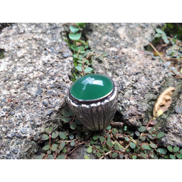 Batu Permata Natural Hijau Garut Chrome Chalcedony GRT007 Ikatan Perak Hijau Istimewa