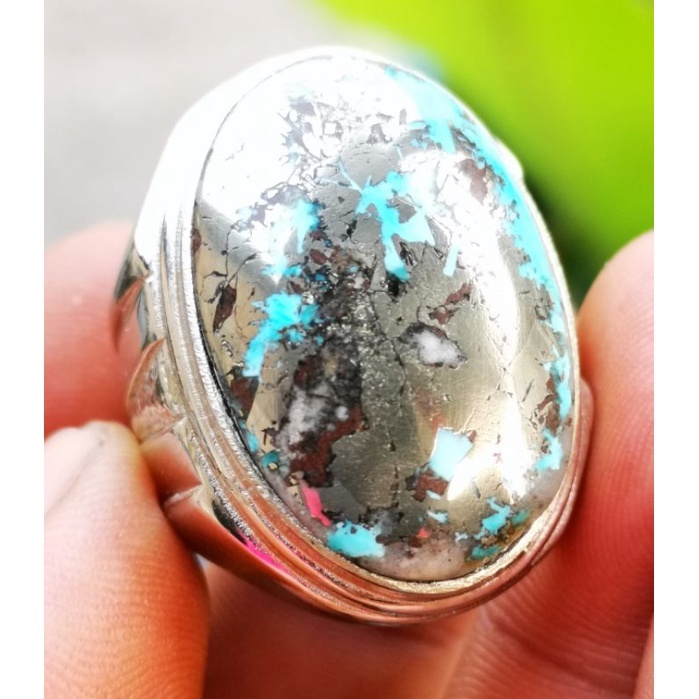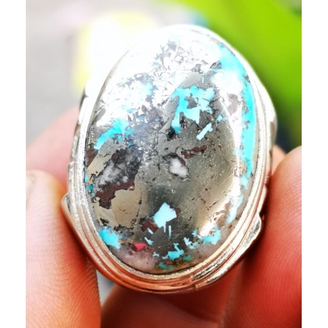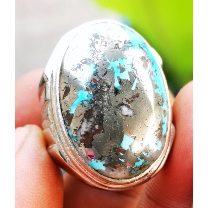 Batu akik natural pirus Persia badar perak