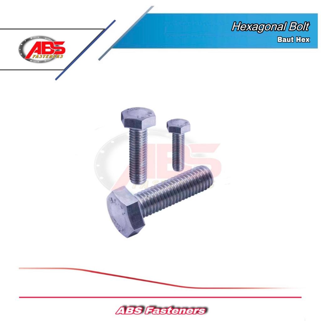 Baut Hexagonal Besi FT M12 x 60 Pitch 1.75 Besi Putih Full Drat