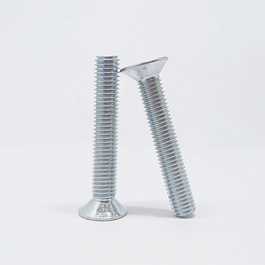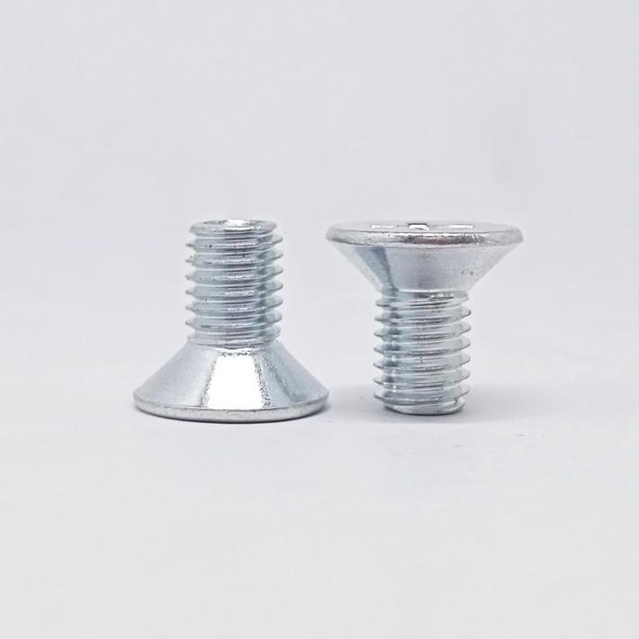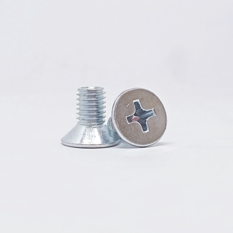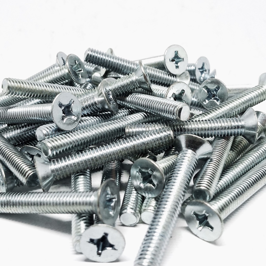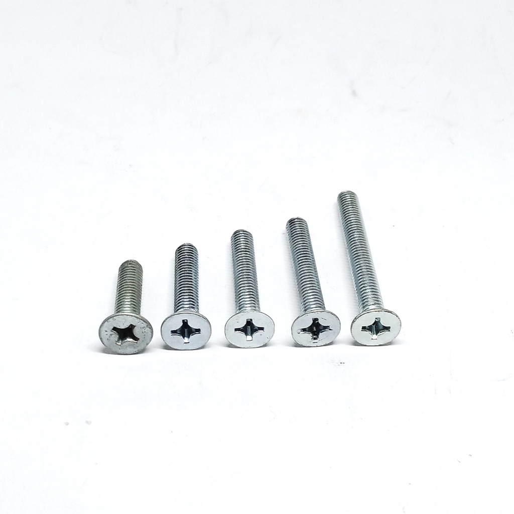 Baut JF M8 Baut Kepala Obeng Rata Obeng Plus (25 pcs) ukuran 8 mm ukuran lengkap Baut Mesin Machine Bolt Baut Verseng JF YF Fasteners Besi Galvanis Obeng Plus Baut Silver Putih Baut untuk mesin dan di rumah anda nut bolt