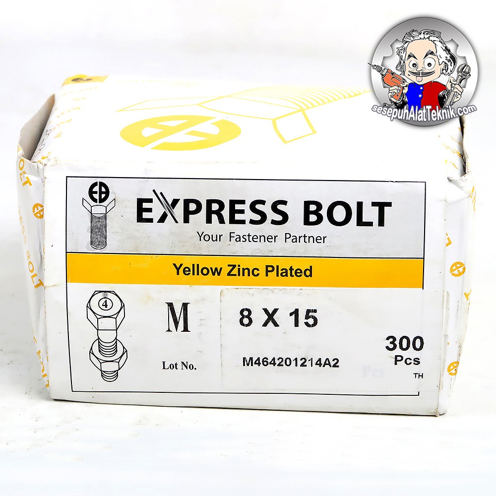 Baut Mur Besi M8 x 15 Kuning EXPRESS BOLT / Baut Besi Siku Lubang 8 mm