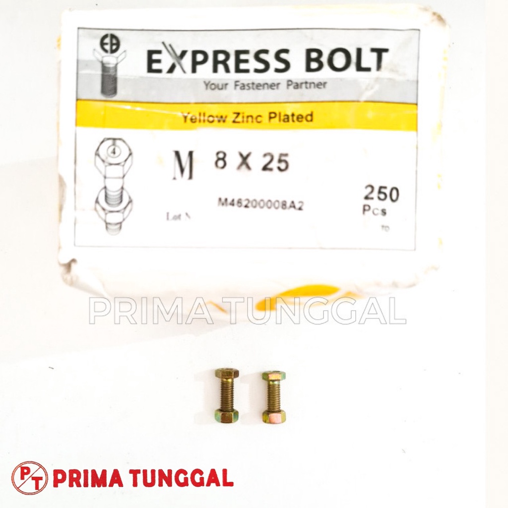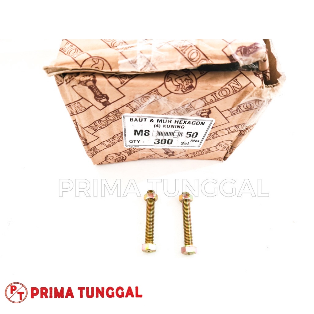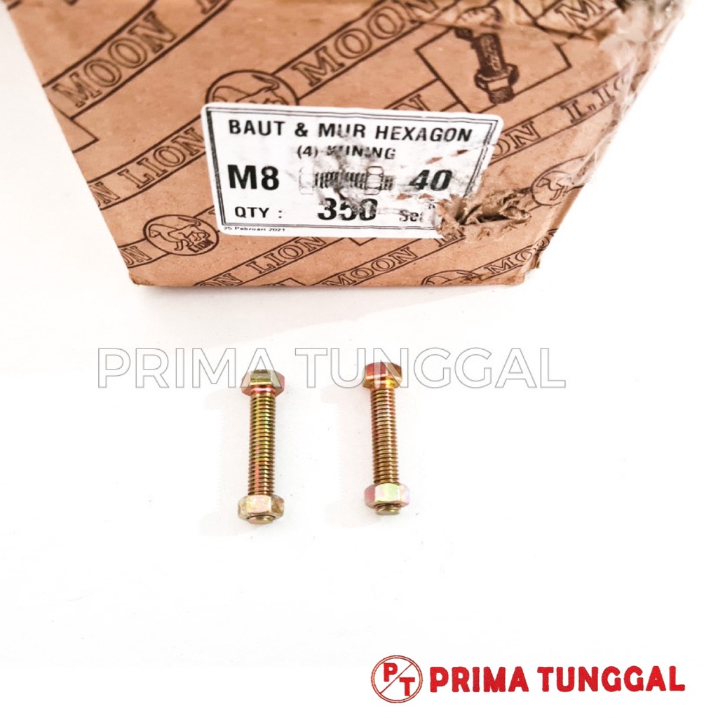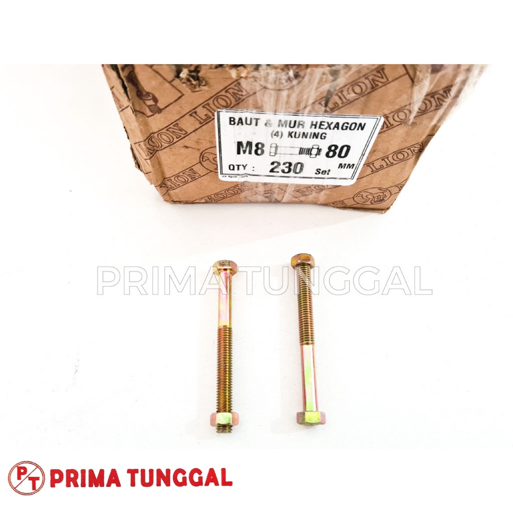 Baut + Mur Kuning M8 Ukuran Baut 12 Panjang 2.5 cm 4 cm 5 cm 8 cm 10 cm