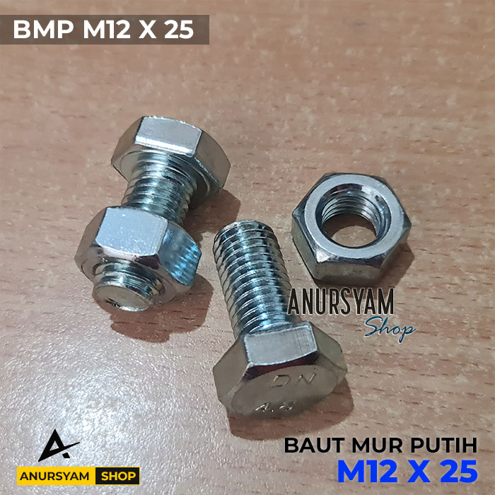 Baut Mur Putih 12x25 | Mur Baut M12 | BMP | Baut Hexagon Putih