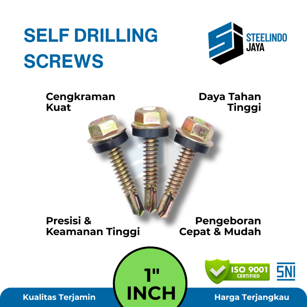 Sekrup Roofing 1 Inch 100 Pcs | Self Drilling Screw (SDS) dengan Washer
