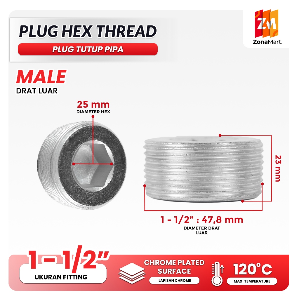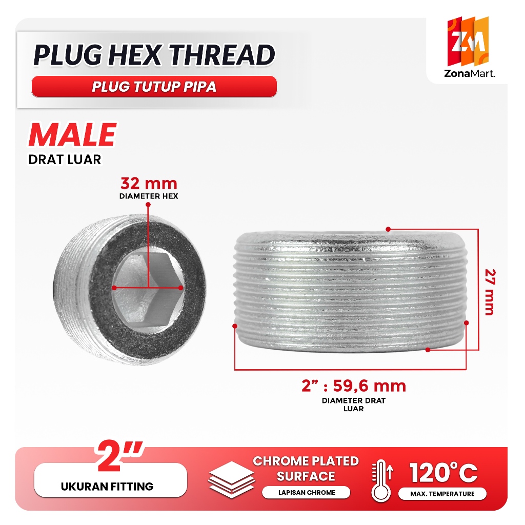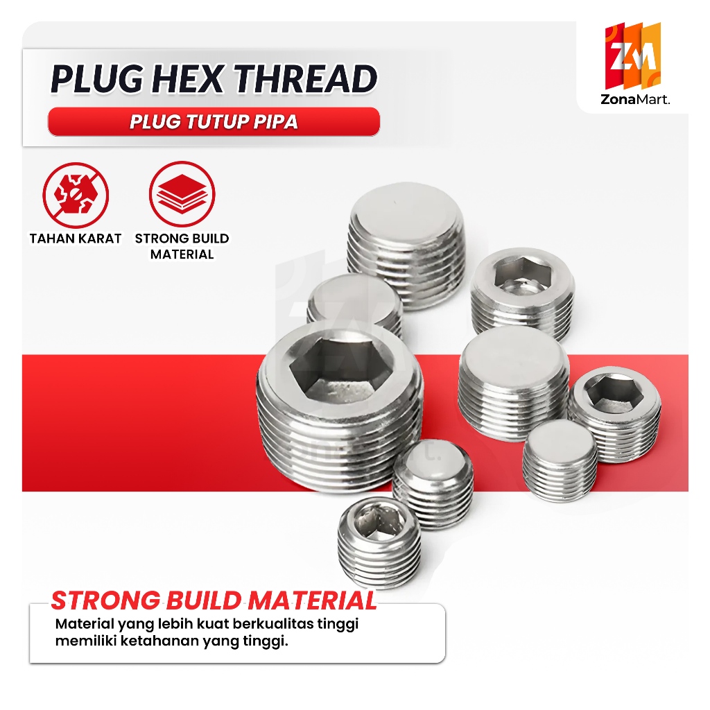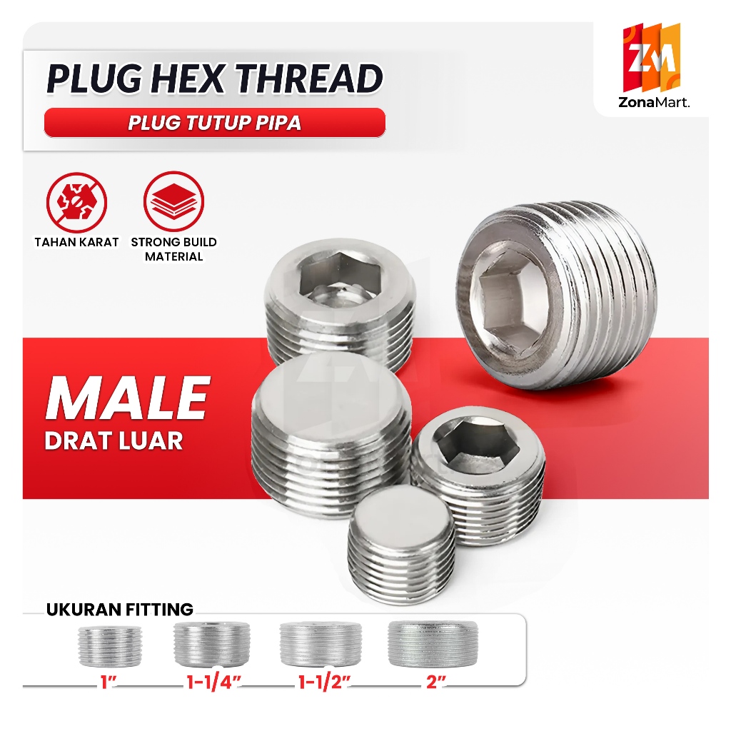 Baut Tutup As Skok Socket Tutup Pipa Hex Thread Socket Male internal Plug Thread Male Tutup Pipa stainless 1'' 1-1/4'' 1-1/2'' 2''