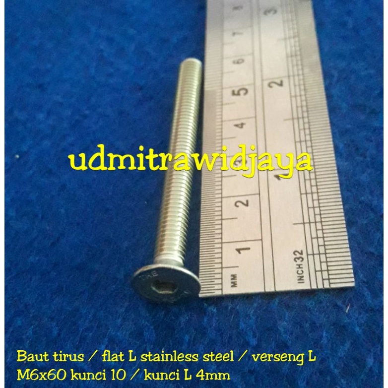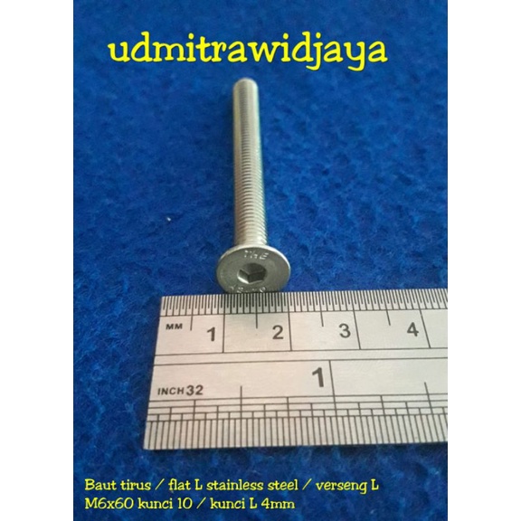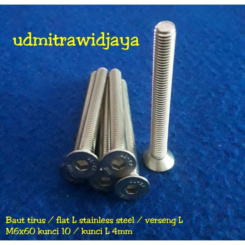 Baut flat L baut verseng baut tirus stainless steel panjang 6cm M6x60 baut speaker panjang SS