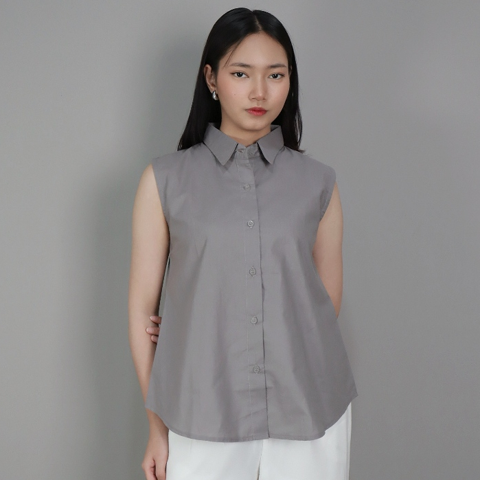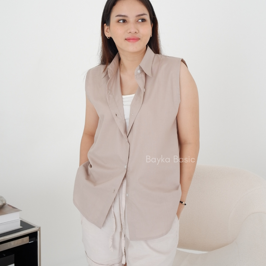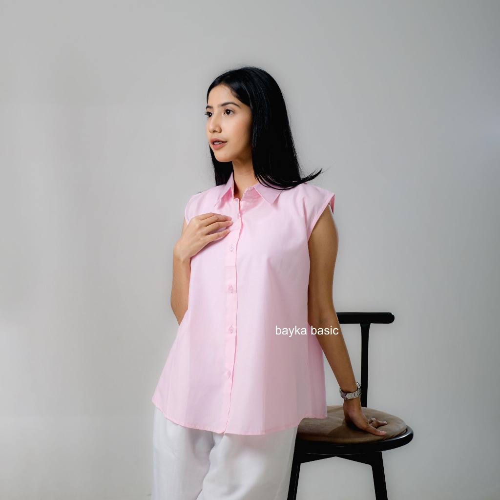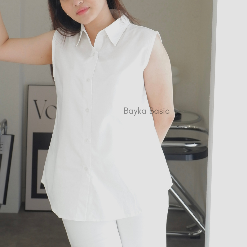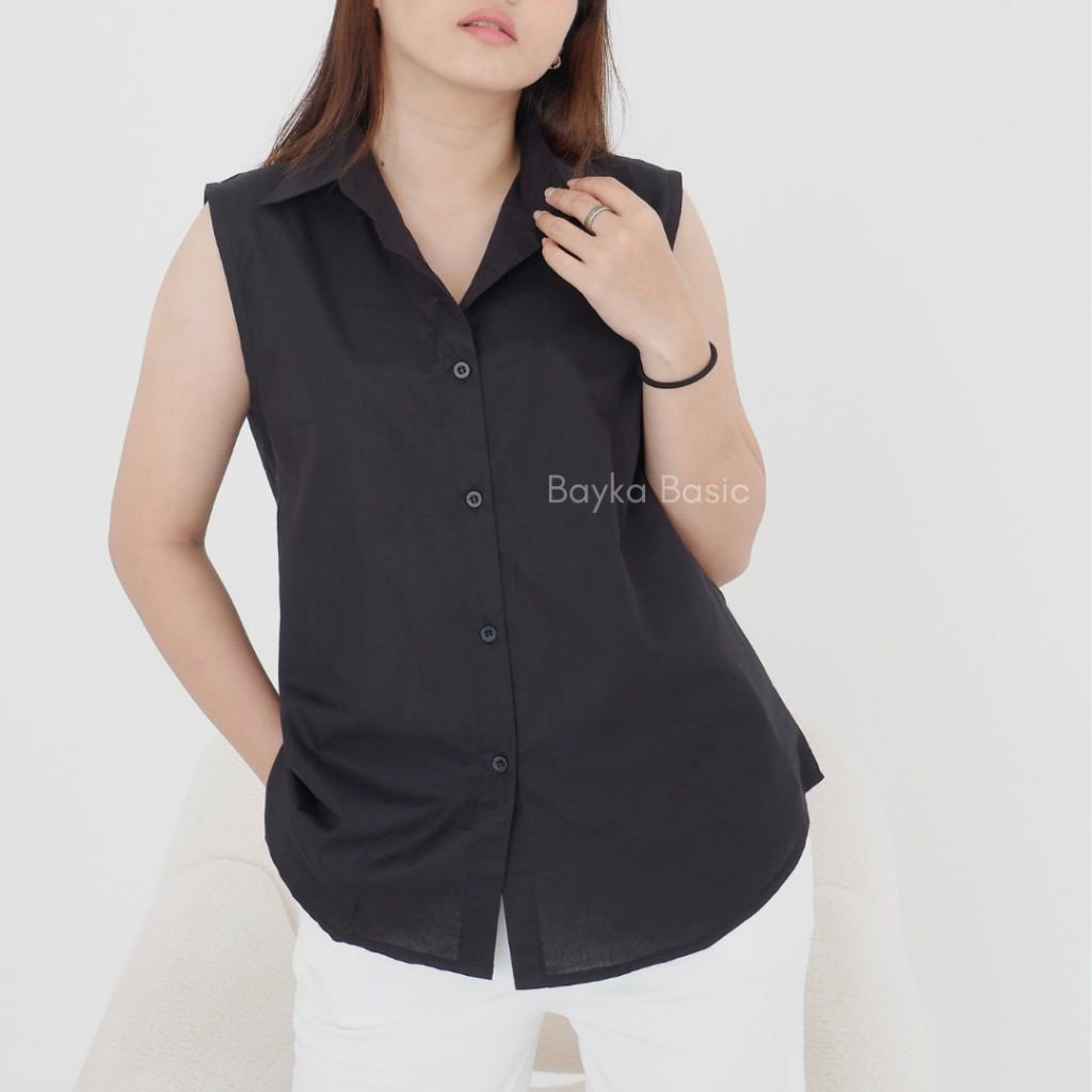 Bayka - Kemeja Wanita Tanpa Lengan/ Sleeveless Collar Shirt Cotton/ Inner Kemeja Kerah Atasan Kancing Depan Katun Big Size Jumbo Casual Formal
