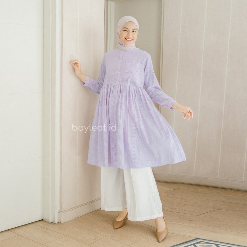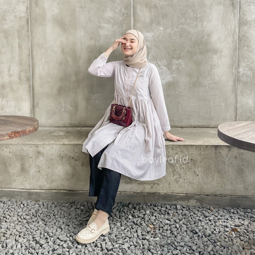 Bayleaf.id Jihan Tunik Striped Katun Lengan Panjang / Atasan Tunik Wanita Motif Garis