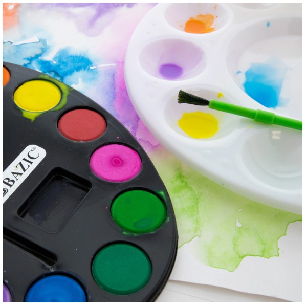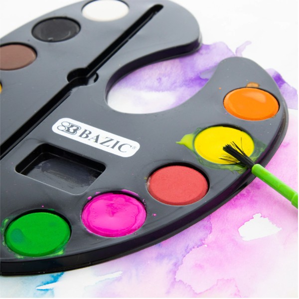 Bazic Watercolor Paint Cake 12 Colors w/ Palette - Cat Air Padat 12 Warna