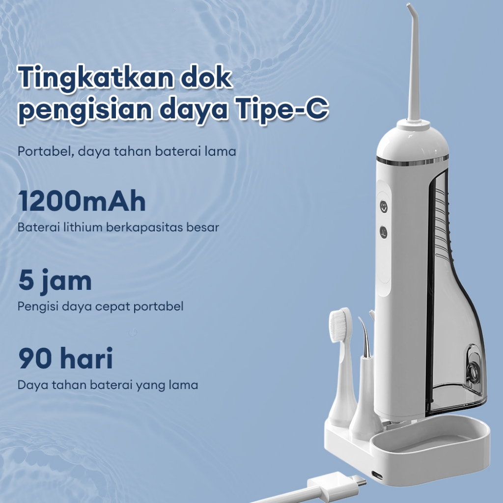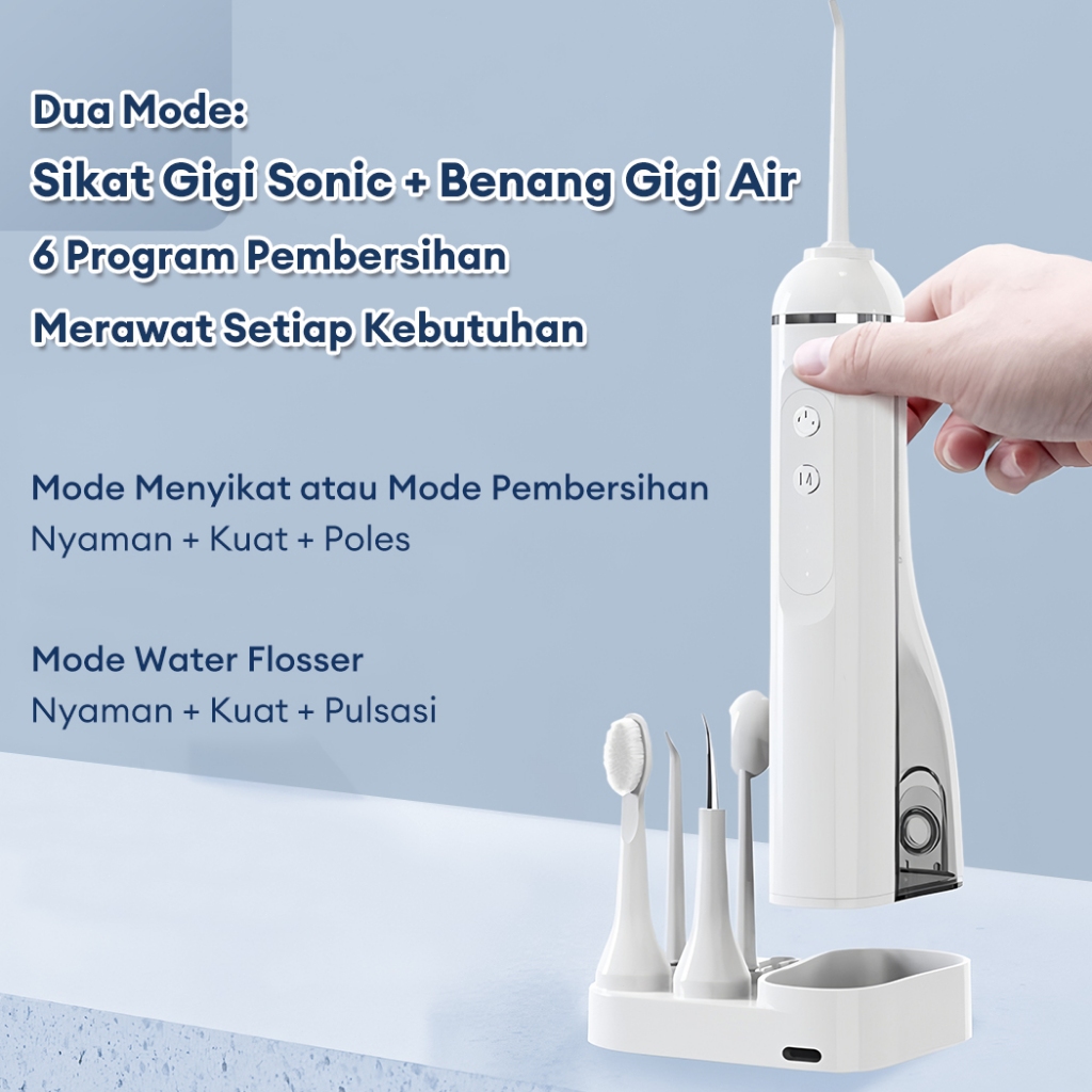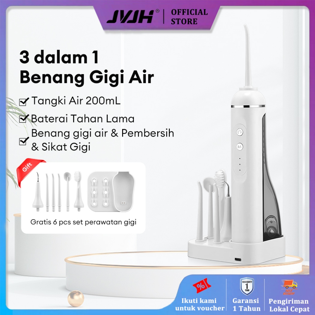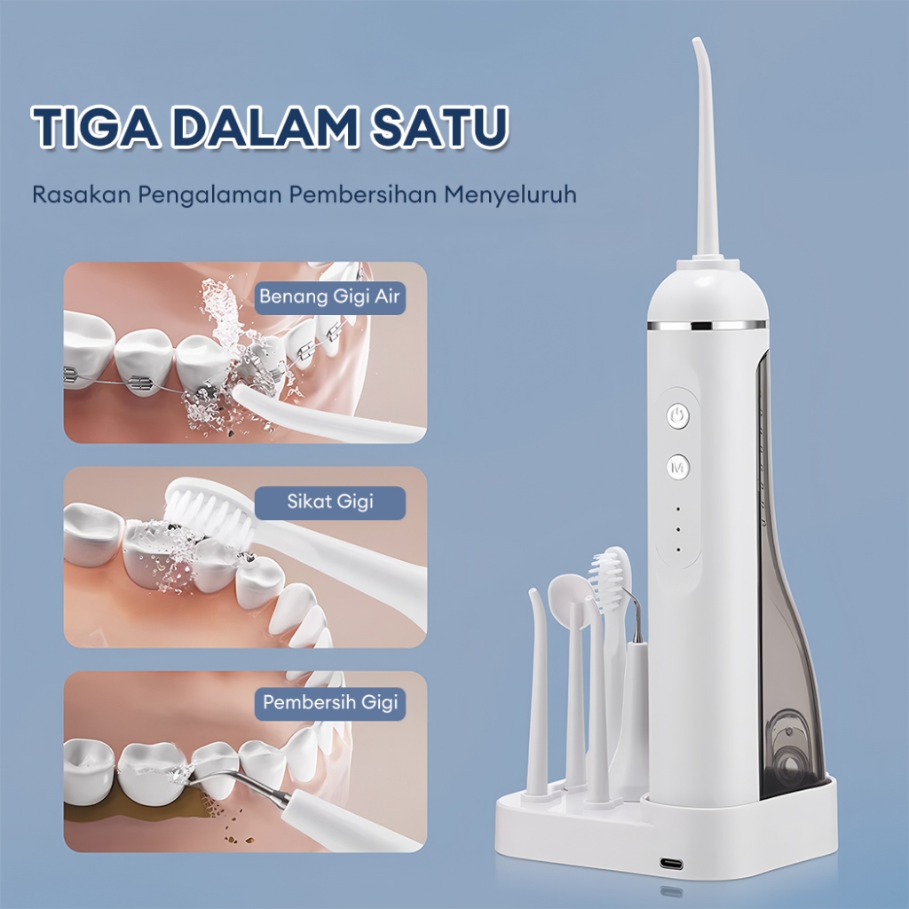 JVJH Water Floss Gigi 3 in 1 Electric Toothbrush 1200mAh Alat Pembersih Gigi 200ML Oral Care Dental Scaler DG009W