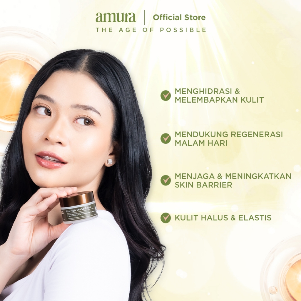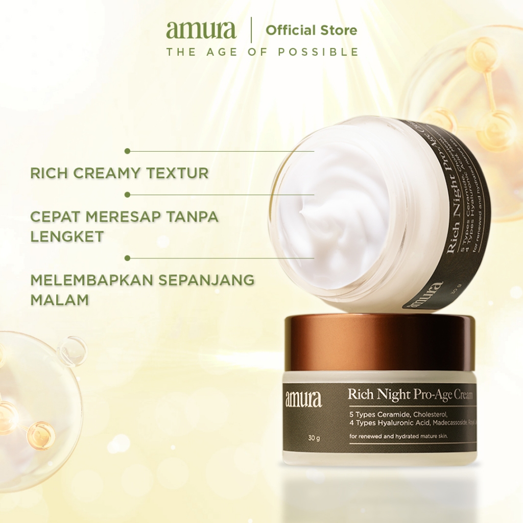 Amura Rich Night Pro-Age Cream 30g | 3X Ceramide Melindungi Skin Barrier Melembapkan Mencerahkan