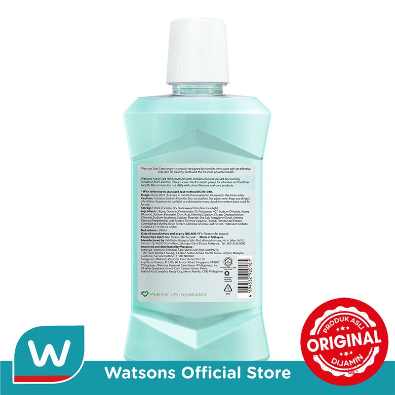 Watsons Active Salt Herbal Mouthwash 500ml