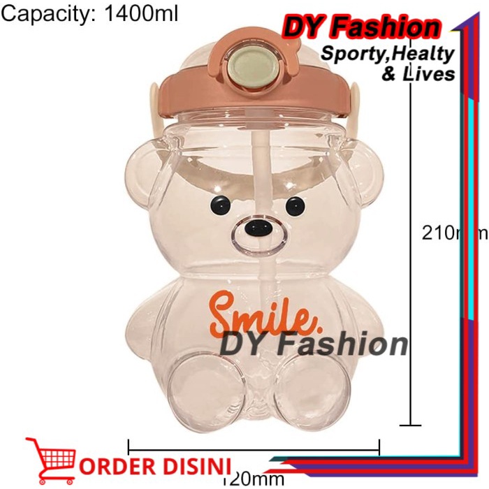 Bear Botol Air Minum 1.4 Liter SP514 Water Bottle 3D bentuk beruang transparan Botol Minum Viral terbaru Botol Minum Beruang Gemoy