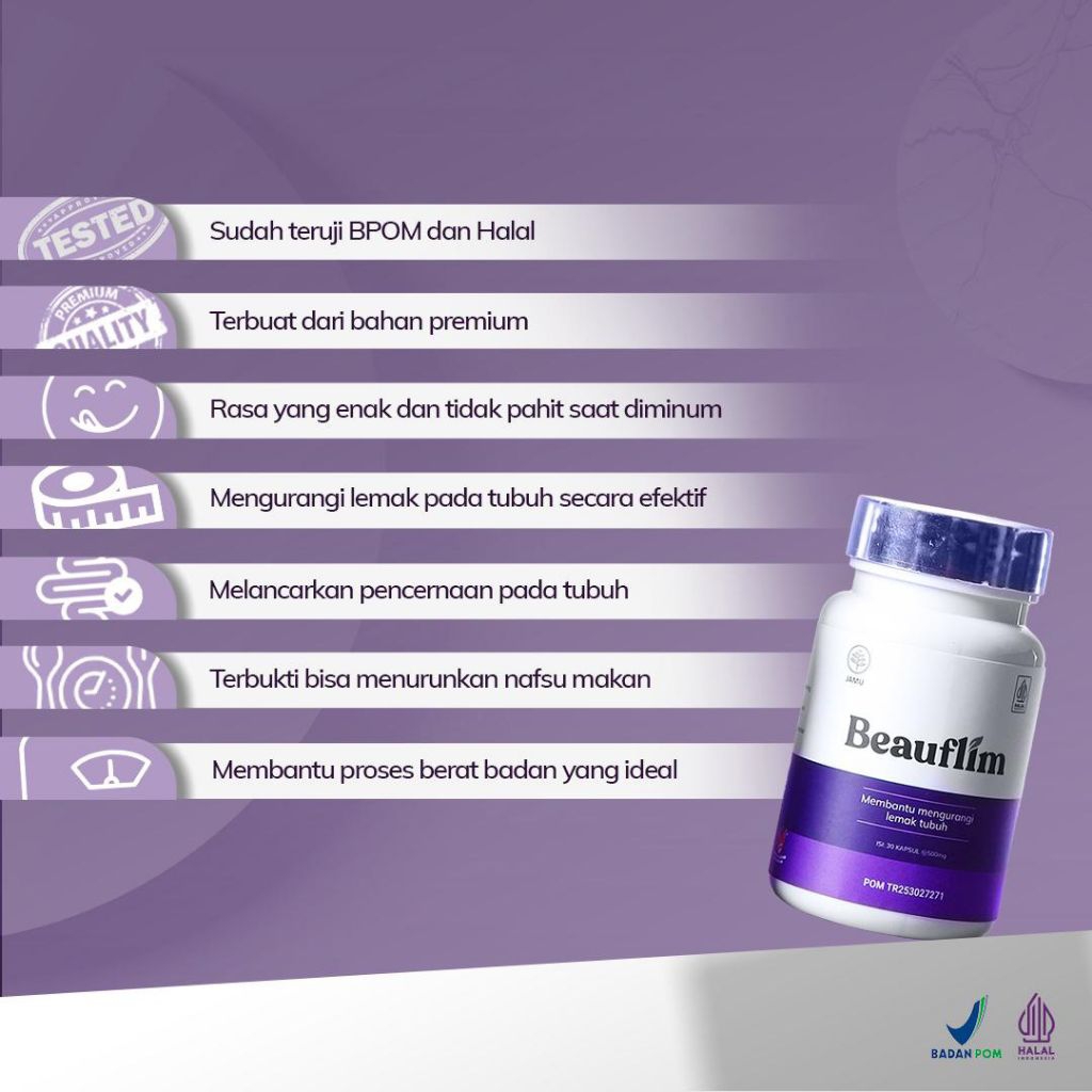 Beauflim Slimming Capsule (30 Kapsul) | Kapsul Diet Ampuh, menurunkan 2-8kg, bakar lemak, dan aman BPOM | Halal
