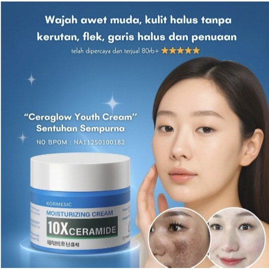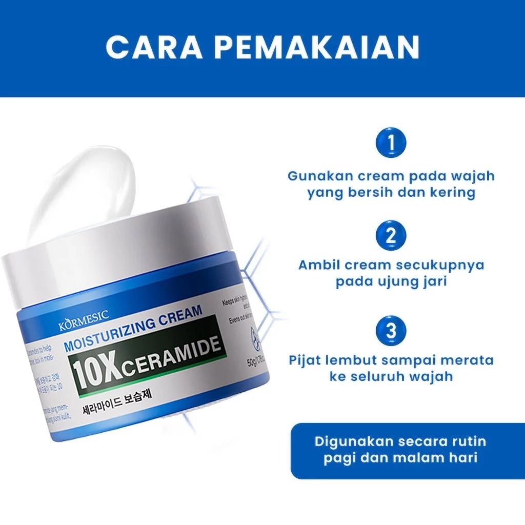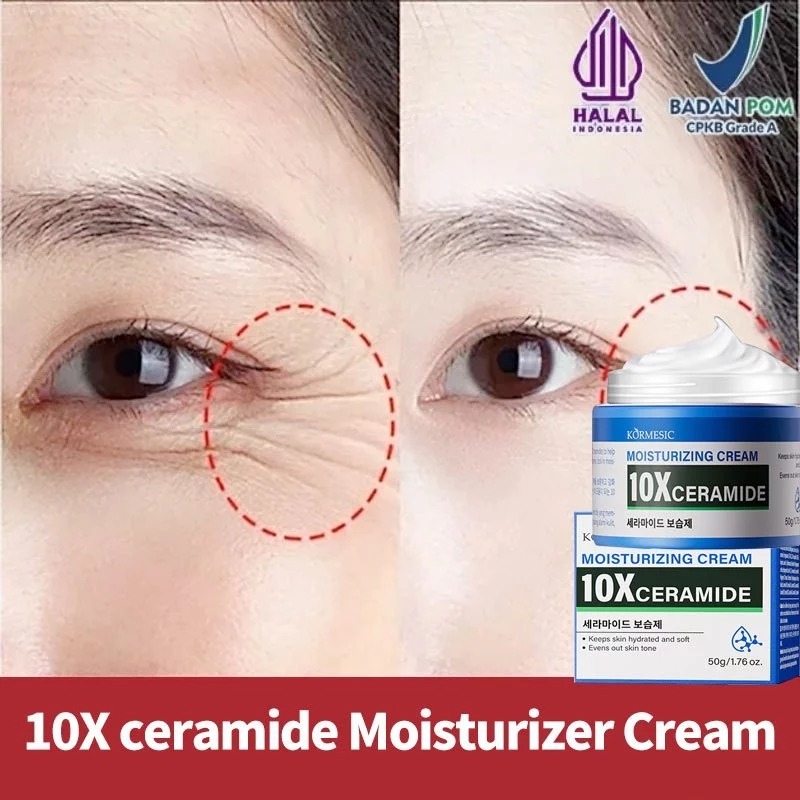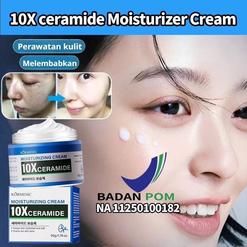 [BPOM] KORMESIC 10x Ceramide Moisturizing Cream 50g - Cream Flek Hitam Membandel Cream Siang & Malam Glowing Pelembab Wajah Kering dan Kusam Pemutih Mencerahkan Kulit Anti Penuaan Anti kerut Skin Barrier Repair Moisturizer Cream