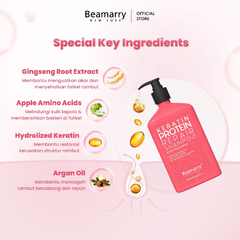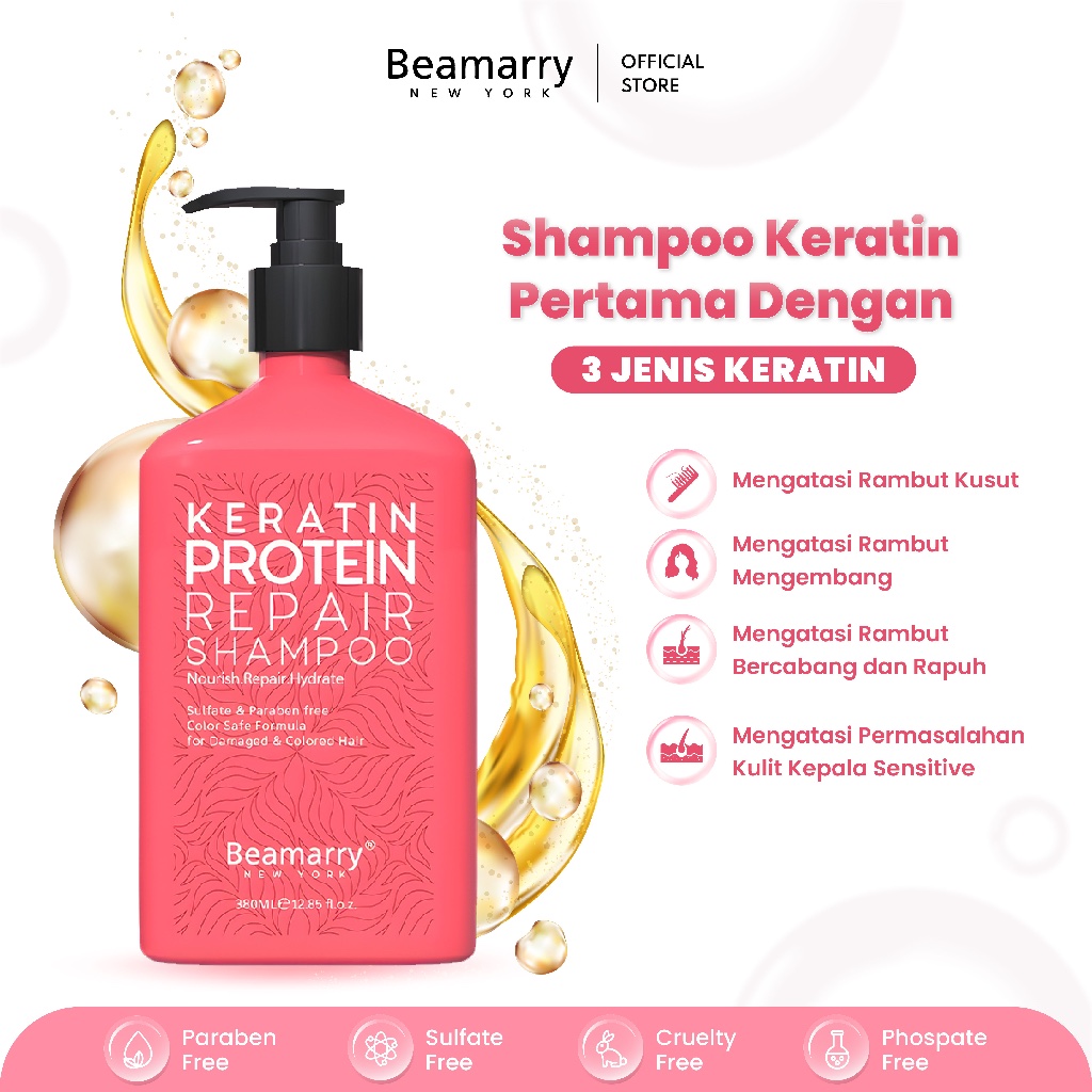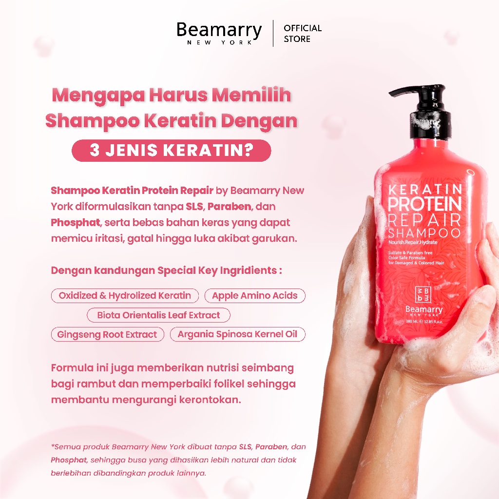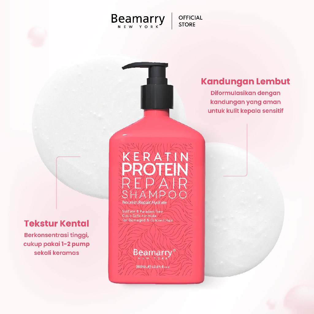Beamarry New York Shampoo Keratin Protein Repair |380ml| Shampoo Menghaluskan Rambut & Anti Rambut Kasar - Anti Rontok – Hair Growth – Anti Ketombe – Penguat Akar Rambut |BPOM – No SLS – No Phospate – No Paraben – Untuk Kulit Kepala Sensitive|