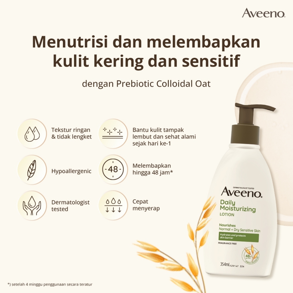 Aveeno Daily Moisturizing Lotion 354ML/Lotion Pelembap untuk Kulit Normal & Kering