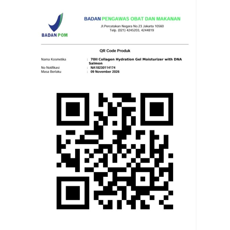 GEL MOISTURIZER COLLAGEN 702 whitening face anti kerut dan keriput collagen with DNA salmon 50 gram BPOM pemutih wajah Niacinamide
