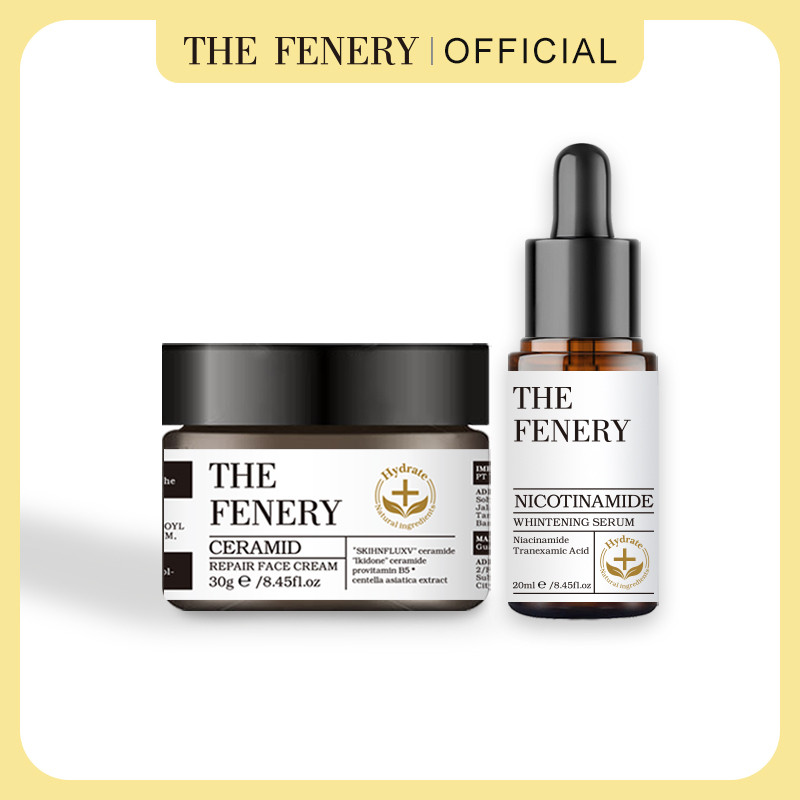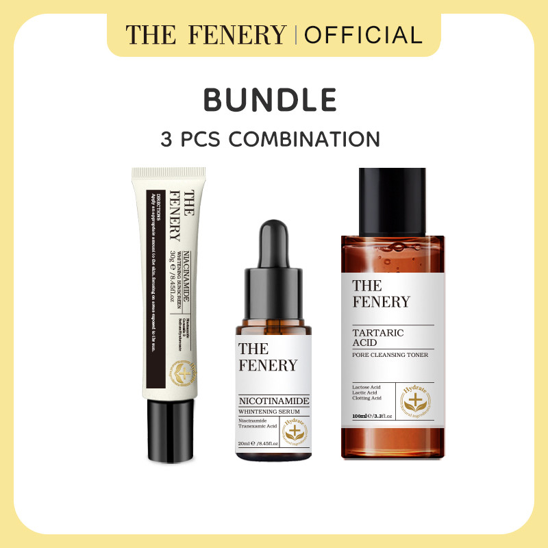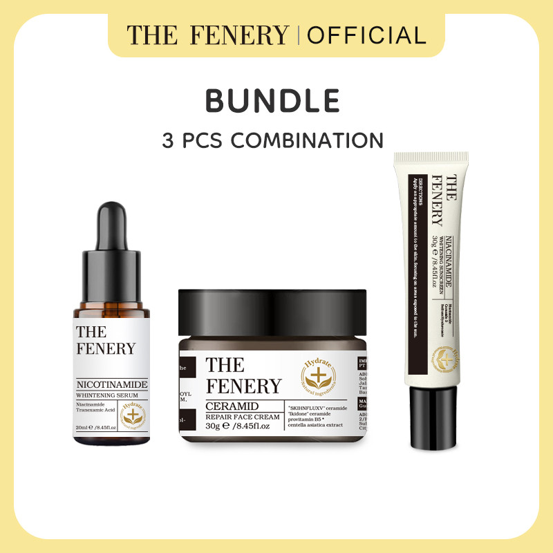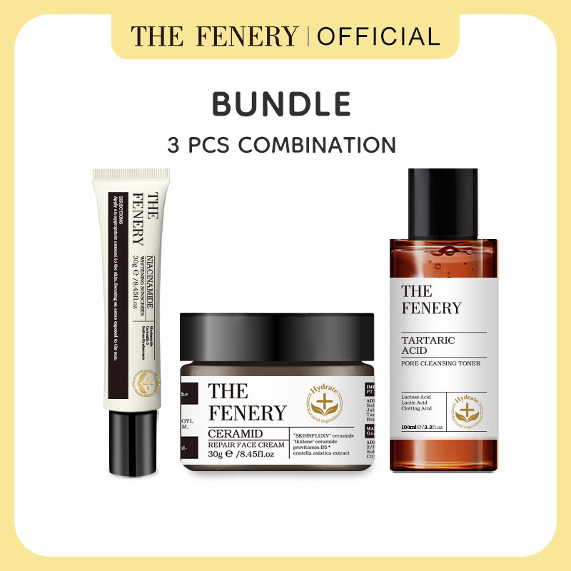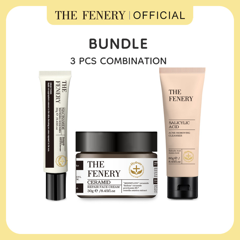 The Fenery AHA Centella Toner & Salicylic Acid Cleanser & Niacinamide Brightening Serum & Niacinamide Whitening Sunscreen & Ceramide Cream - Facial Wash Jerawat Ceramide Moisturizer Wajah Niacinamide Brightening Suncreen Serum Toner Wajah Pencerah